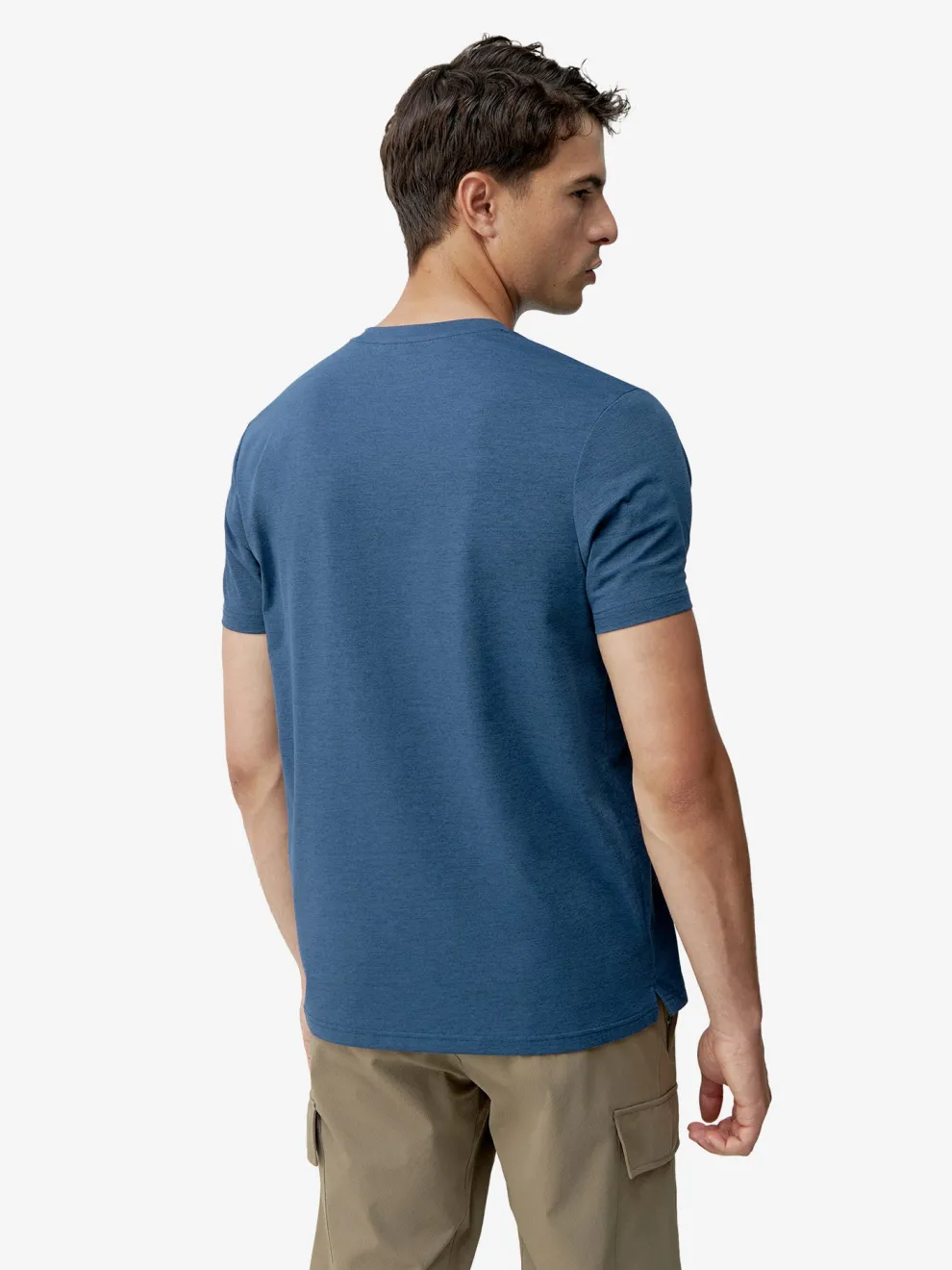 Cott_Free” fabric short sleeve t-shirt with box collar and side slits for comfort.