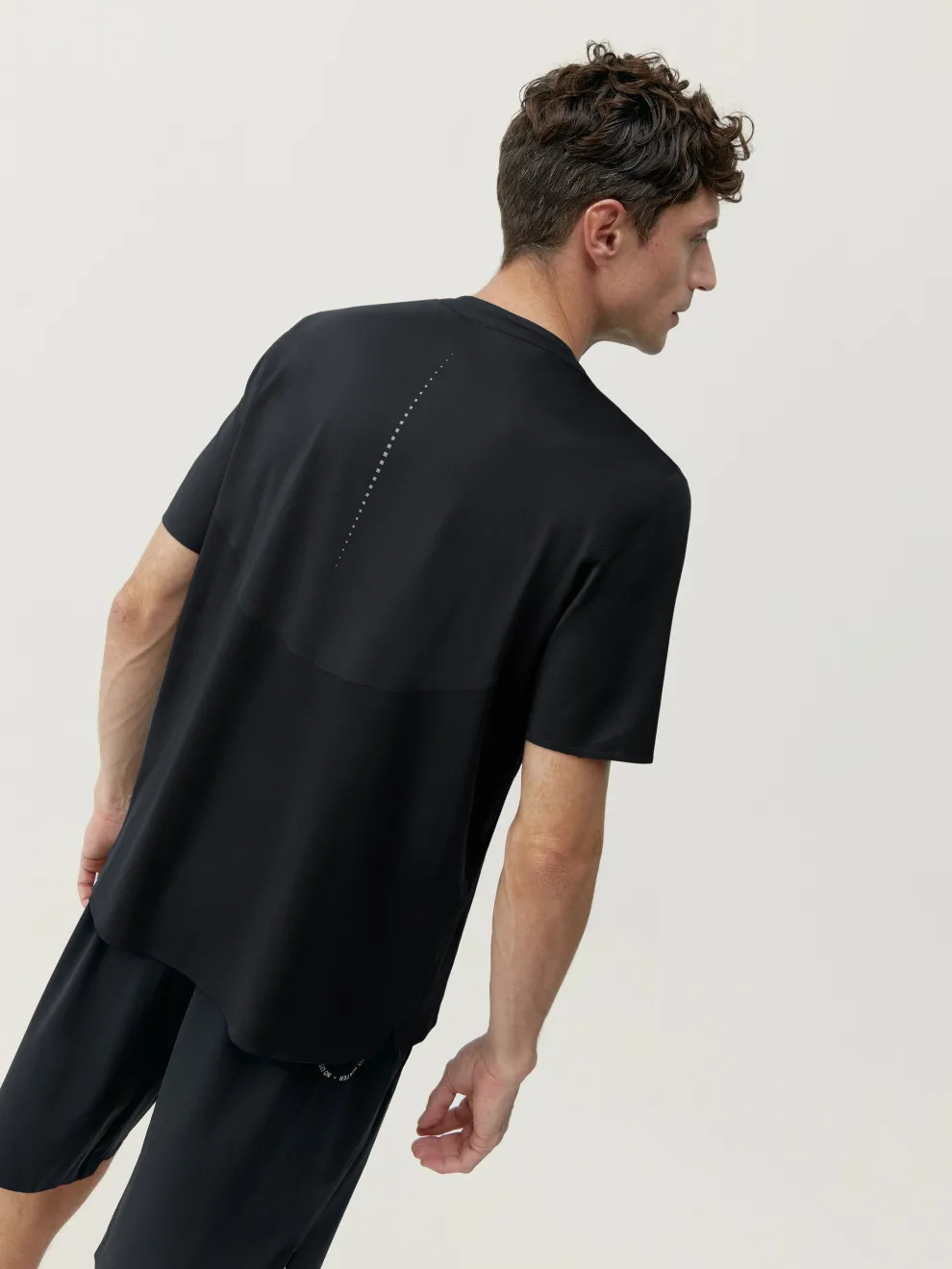 T-shirt with thermo-sealed seams and finishes. ‘Fly-Tech’ fabric, which is light and fluid, Combined with mesh fabric on the back and sides for great breathability. The shirt has micro holes in the armpits to provide greater breathability and a reflective print on the back.