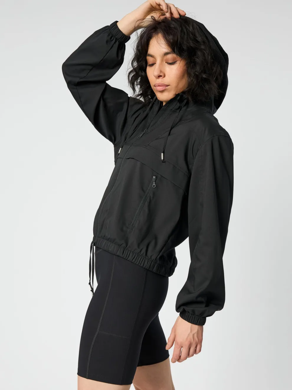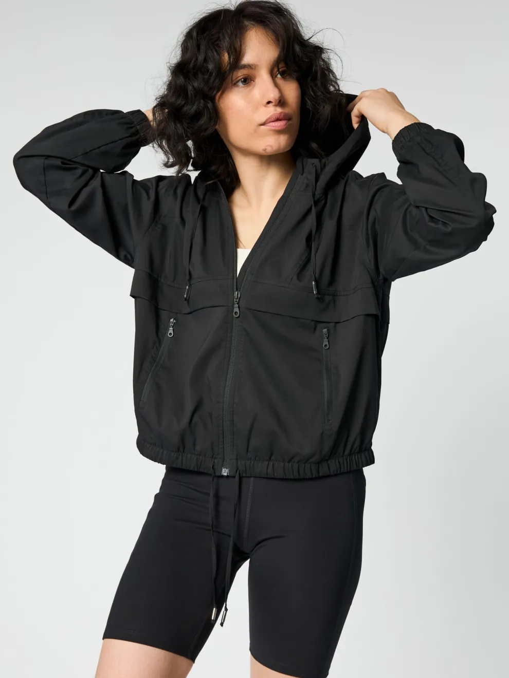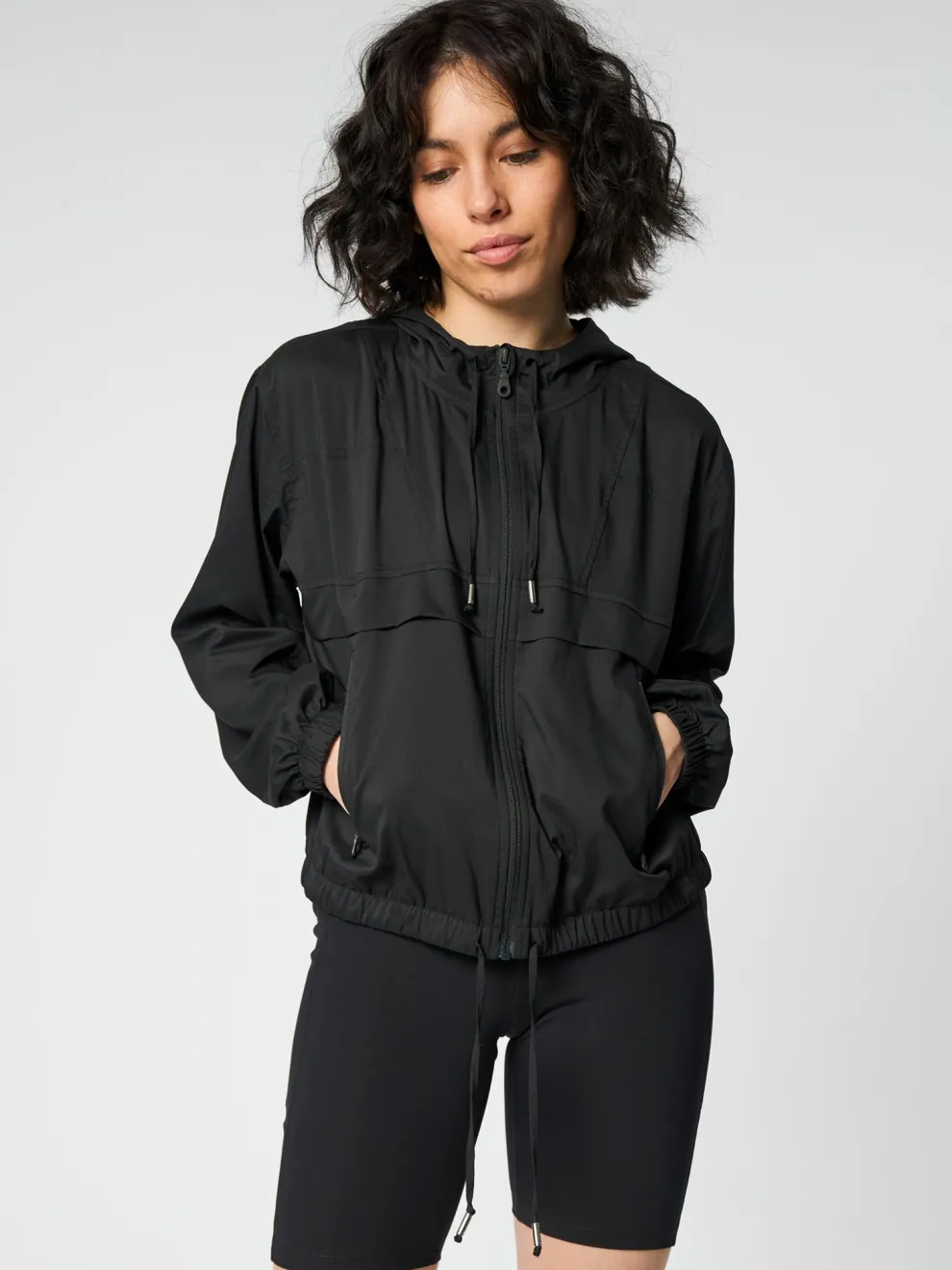 The Allie Hoodie Windbreaker is a lightweight and stylish jacket perfect for layering. Featuring a hood, full-zip closure, and two side pockets, the jacket is made from recycled materials and is designed to be both comfortable and functional.