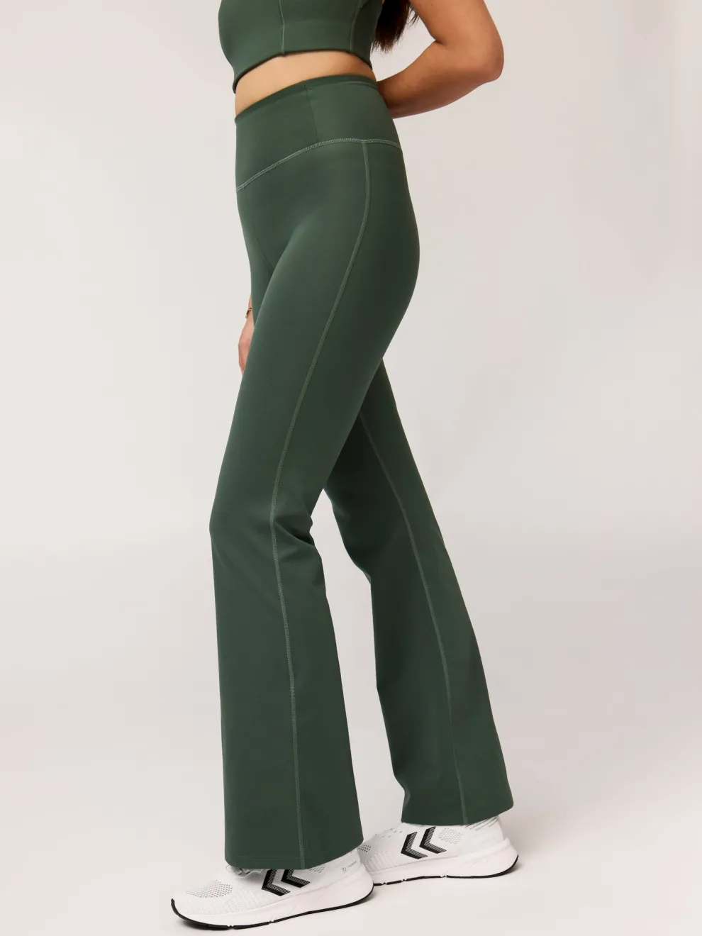 By very popular demand, a high-rise compressive flare legging made from recycled materials and recyclable when you’re finished with it.
