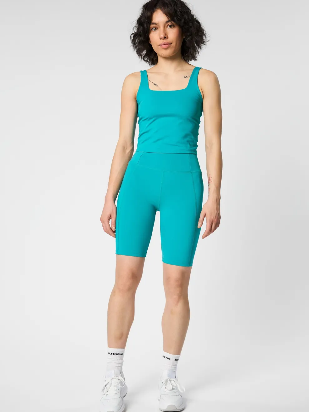 These Girlfriend Collective high-rise bike shorts are made from recycled water bottles – for working out and helping the environment.