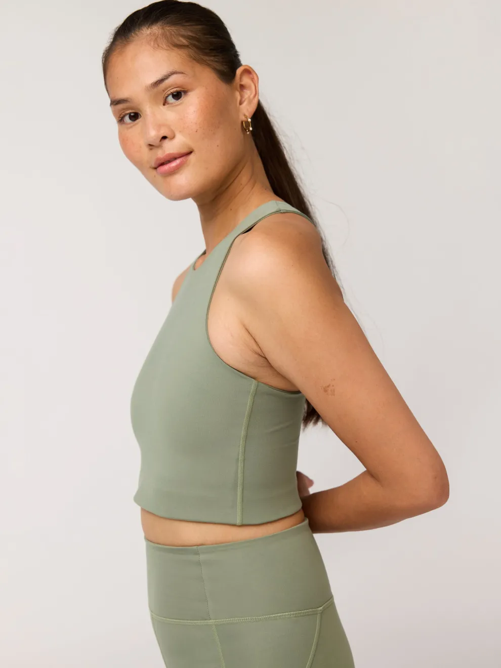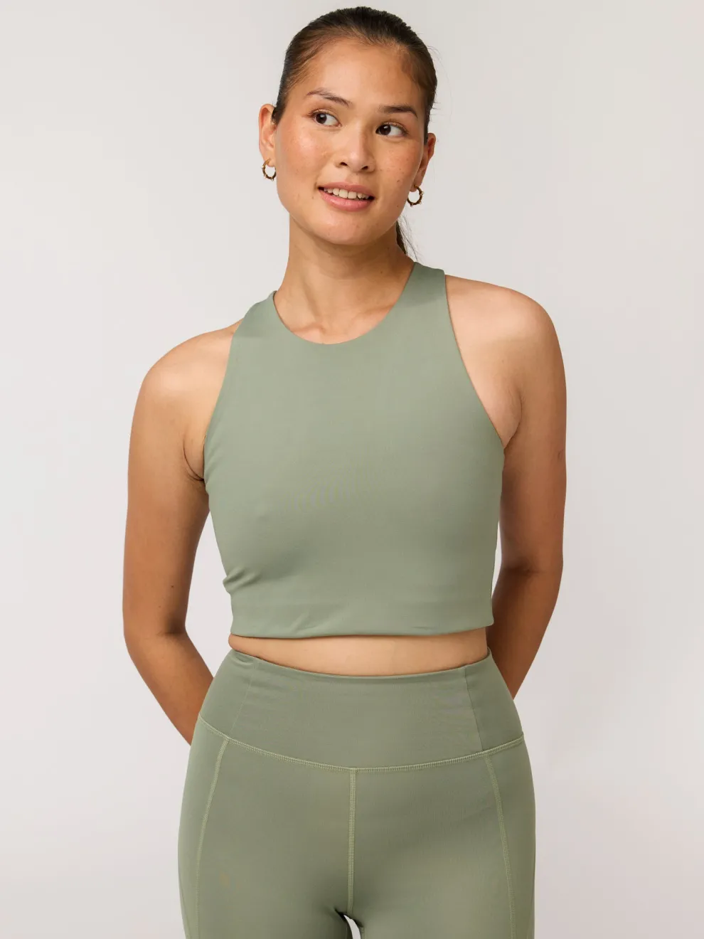 The Dylan Bra is an extra versatile longline sports bra slash crop top that’s designed with a contoured racerback so you can move around without feeling too constricted. It also has a high neck that keeps you covered and looks really good layered under or over lower-cut things.