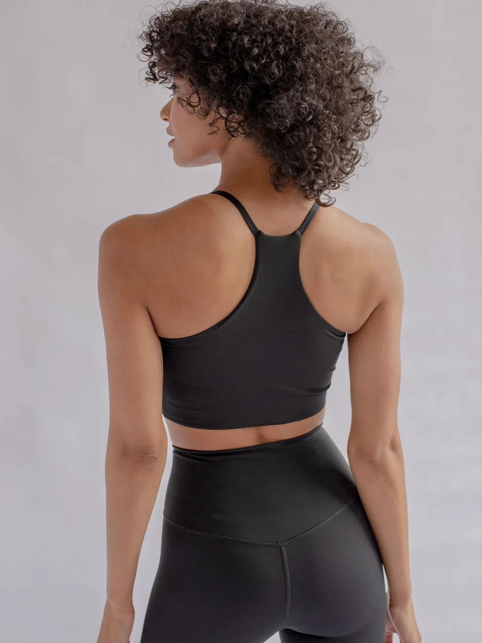 A U-neck bra with a racerback, thin straps and a soft-to-the-touch soft feel. Made with Girlfriend Collective’s lighter weight and breathable FLOAT fabric, it’s perfect for low-impact activities like hiking, biking or hand-washing all of your reusable water bottles.