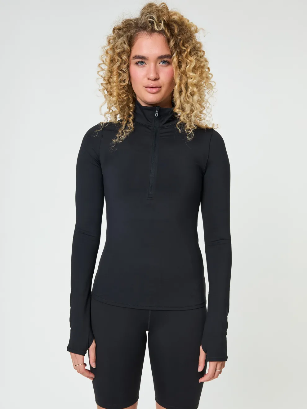 A soft, sweat-wicking half-zip with sleeve thumbholes for layering up pre-and post-workout, lounging around, or taking on your next adventure.