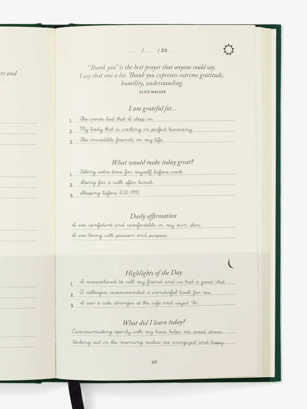 Transform your life with Intelligent Change’s Five Minute Journal. Even on the busiest days, spend only five minutes practicing gratitude to boost positivity, reduce anxiety, and improve well-being. It’s the simplest, science-backed way to a happier you.
