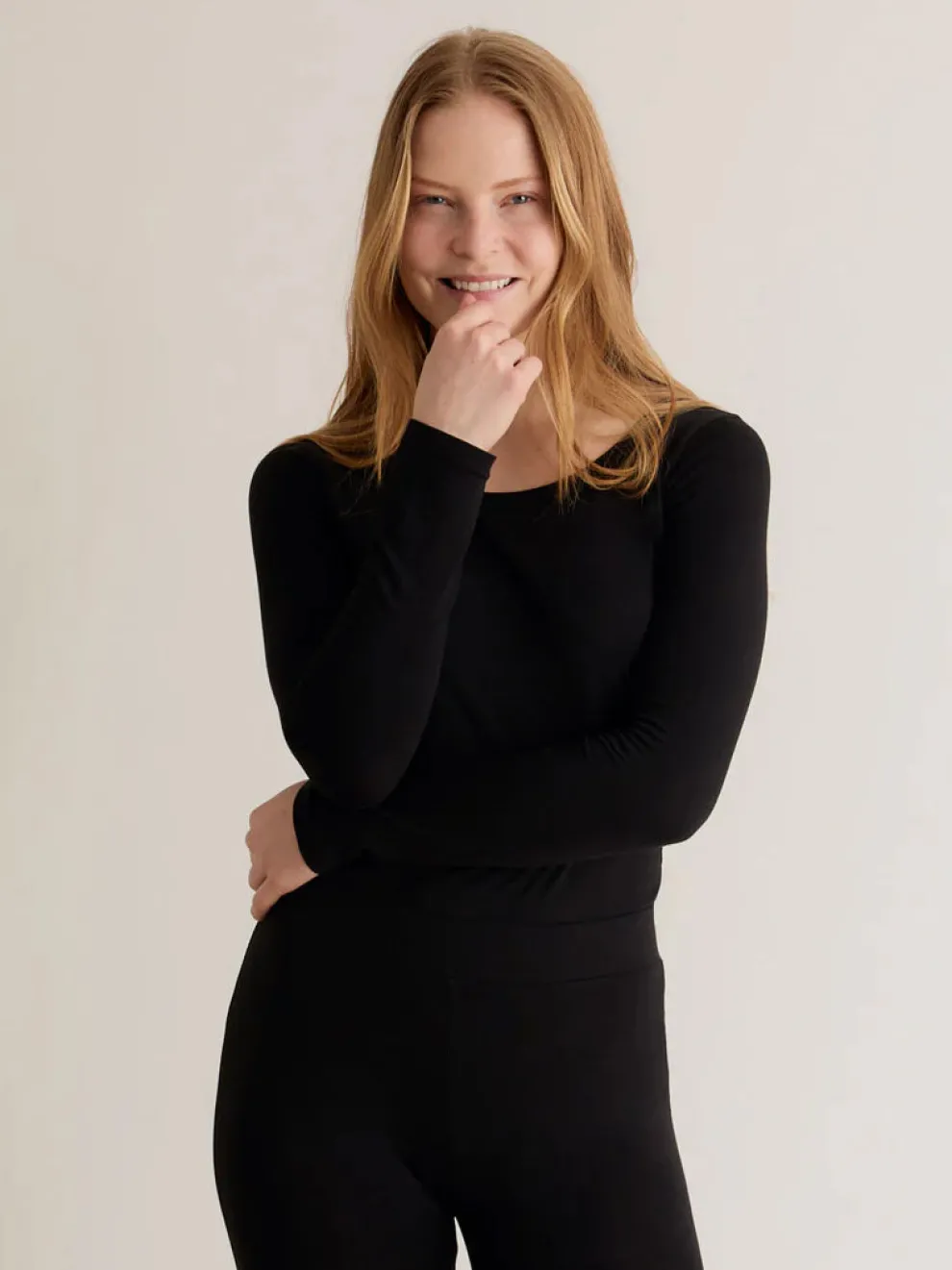Enjoy all day comfort with Komodo’s organic cotton basics. Crafted from premium, sustainably sourced materials, this long-sleeved scoop neck top is perfect for lounging and layering all winter long.