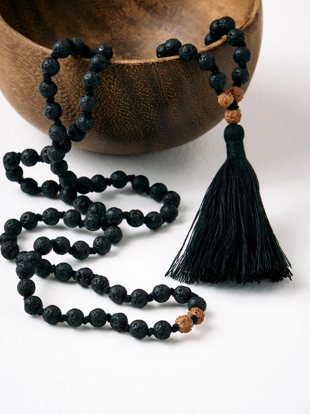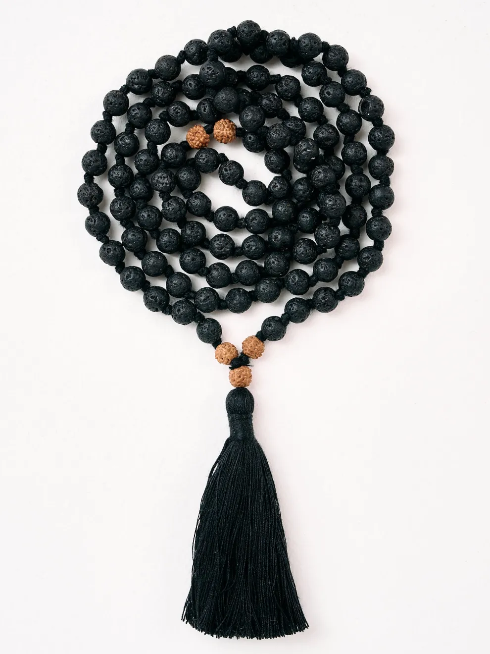 Lava stone is worn as a reminder of strength and clarity. The porous black rock is associated with emotional grounding and is connected with the root chakra.
