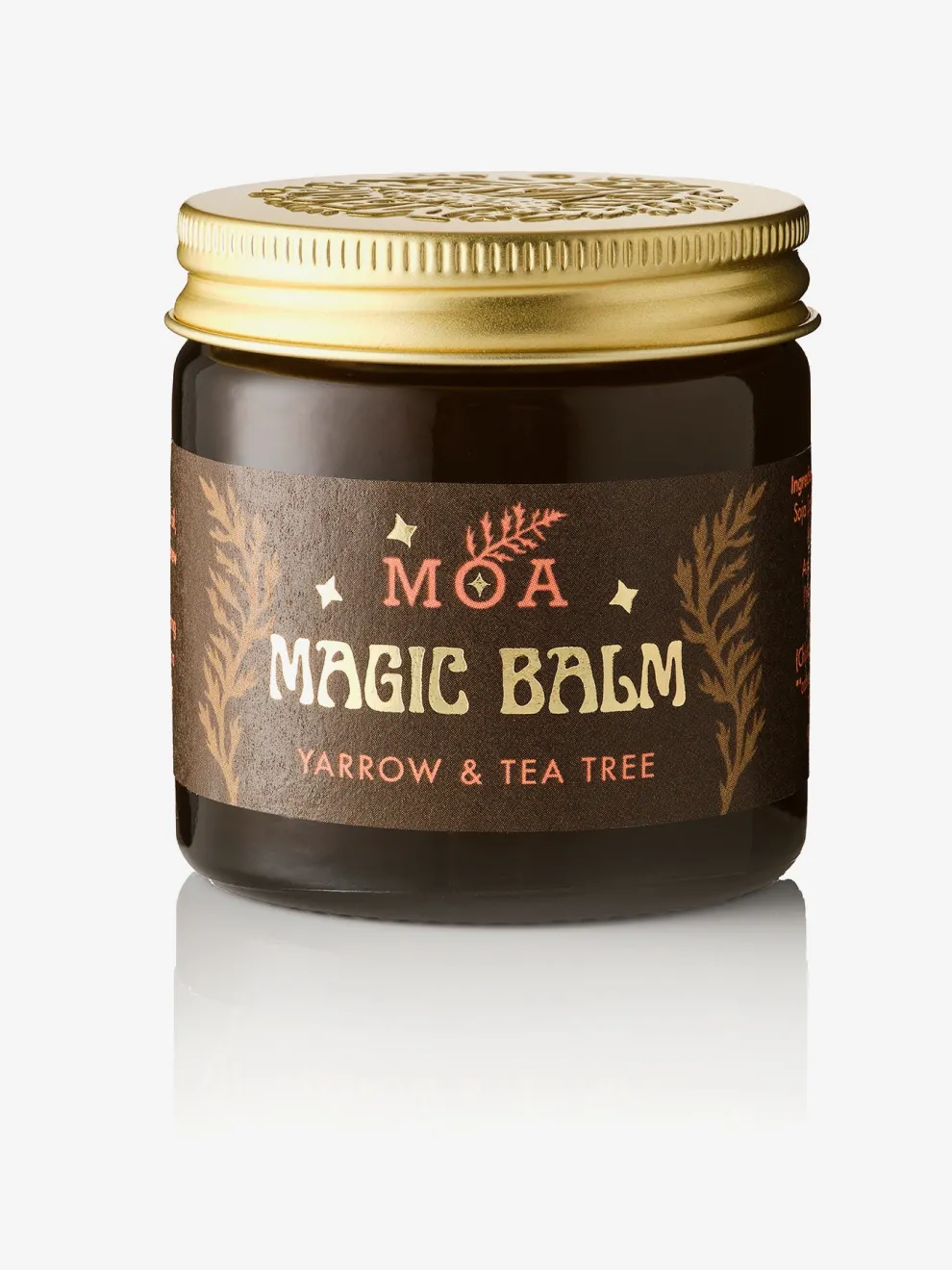 Magic Balm is an organic, calming multi-purpose balm, made with yarrow, an ancient healing herb, along with tea tree oil, nature’s powerful antiseptic.