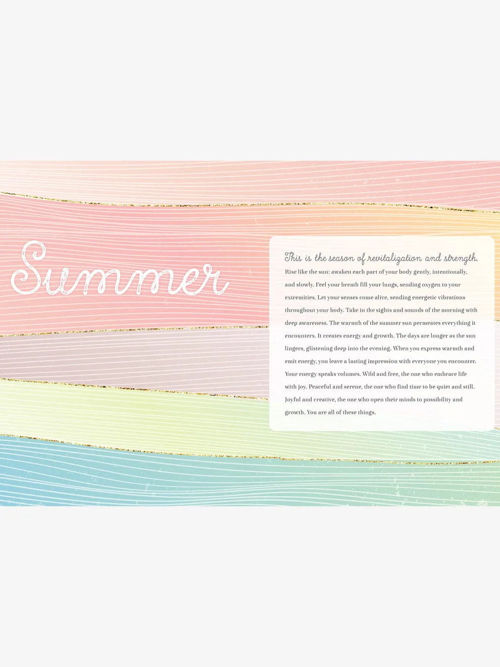 Begin your day with Morning Meditations, with reflective meditations and thoughtful journal prompts for every season paired with serene landscape art to get you on the path of mindfulness.