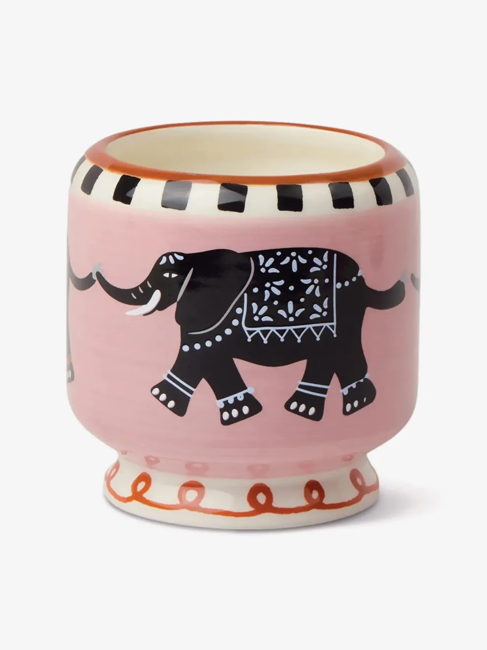 Adopo is designed to bring the zest and thrill of a summer abroad to the comfort of indoor spaces. Featuring the vibrant hues and inviting patterns of Morocco, each 8oz/226g ceramic vessel is meticulously hand-painted with individual brushstrokes for an artisan feel, each one including a matching hand drawn dust cover and adventurous fragrance.