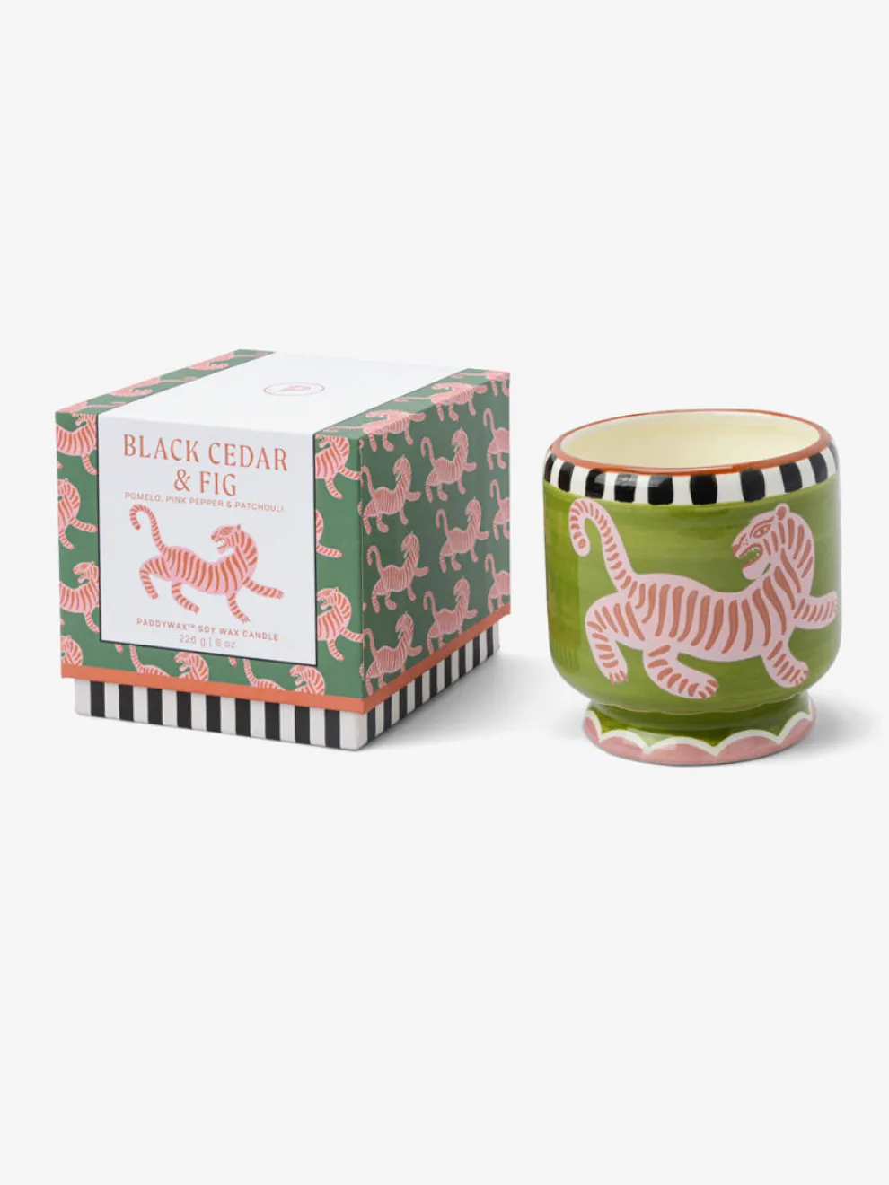 Adopo is designed to bring the zest and thrill of a summer abroad to the comfort of indoor spaces. Featuring the vibrant hues and inviting patterns of Morocco, each 8oz/226g ceramic vessel is meticulously hand-painted with individual brushstrokes for an artisan feel, each one including a matching hand drawn dust cover and adventurous fragrance.