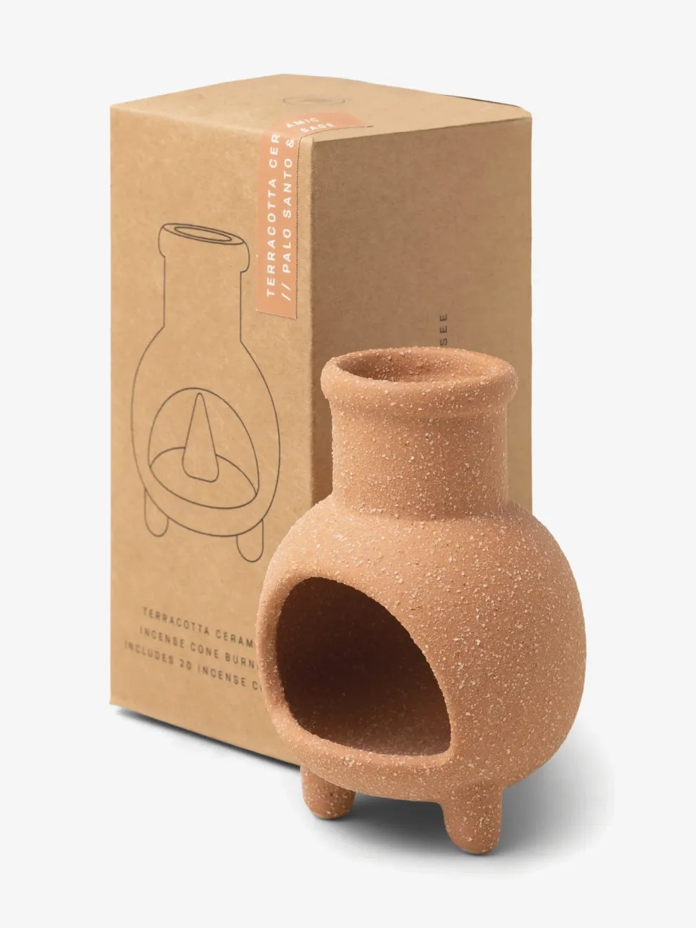 Ignite and be transported to a peaceful fireside retreat with the Paddywax ceramic Chimnea incense cone holder which will fill your home with a flameless fragrance.