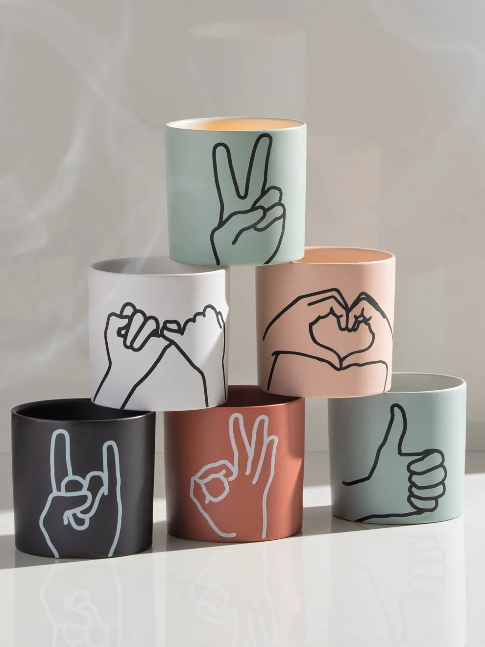 Each candle comes with a gold foil stamped dust cover with a fun sentiment to share with the people you love.