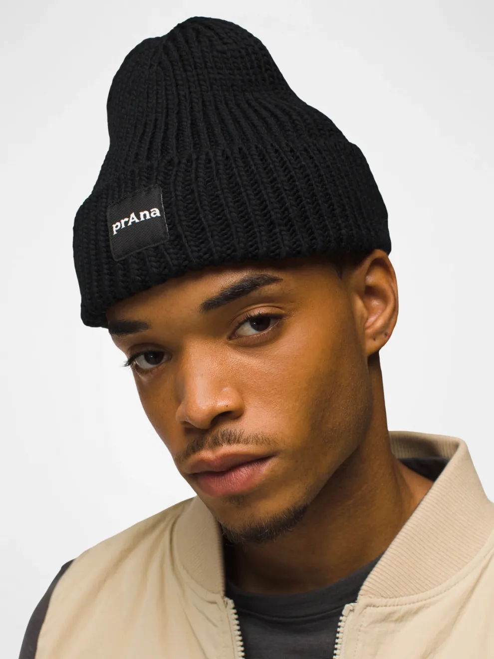 A simple, ribbed beanie with an adjustable brim that’s ready to keep you warm.When the temperature drops, this knit beanie made from recycled materials is ready to keep you warm.