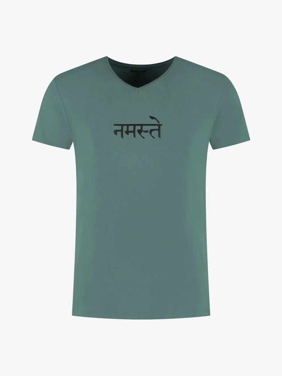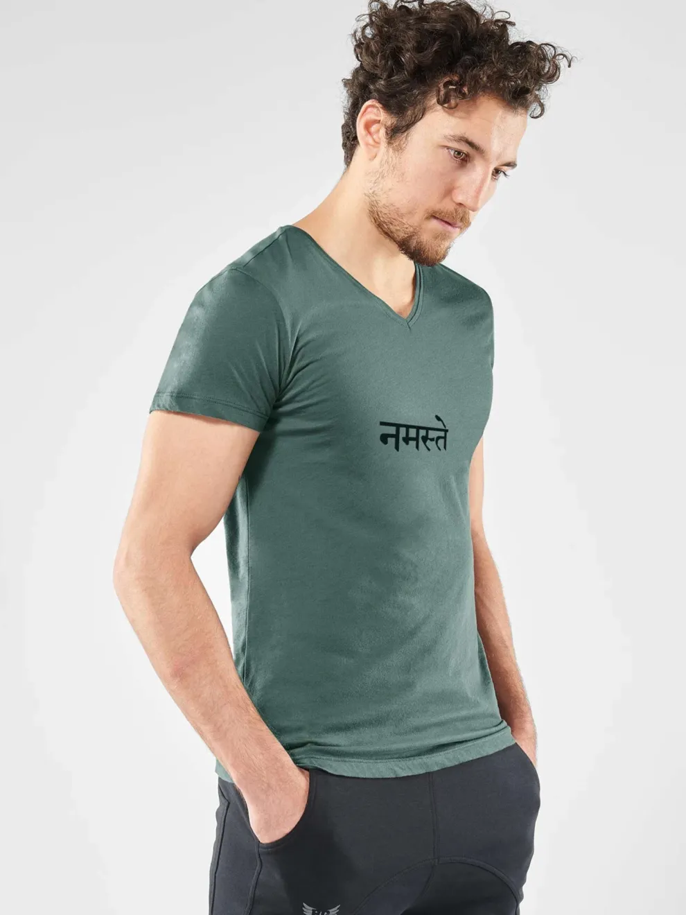 The Moksha tee is a cool and simple V-neck yoga tee, which is made with soft and comfortable certified organic cotton and bamboo.