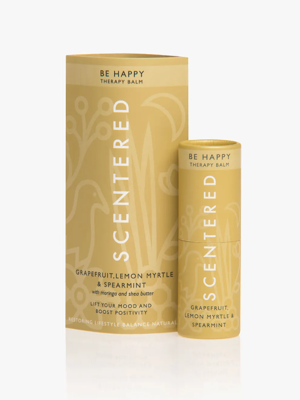Scentered’s 100% natural, essential oil based Aromatherapy Balm is mess-free and won’t leak or spill in your bag. Use BE HAPPY as part of your Wellbeing Ritual.