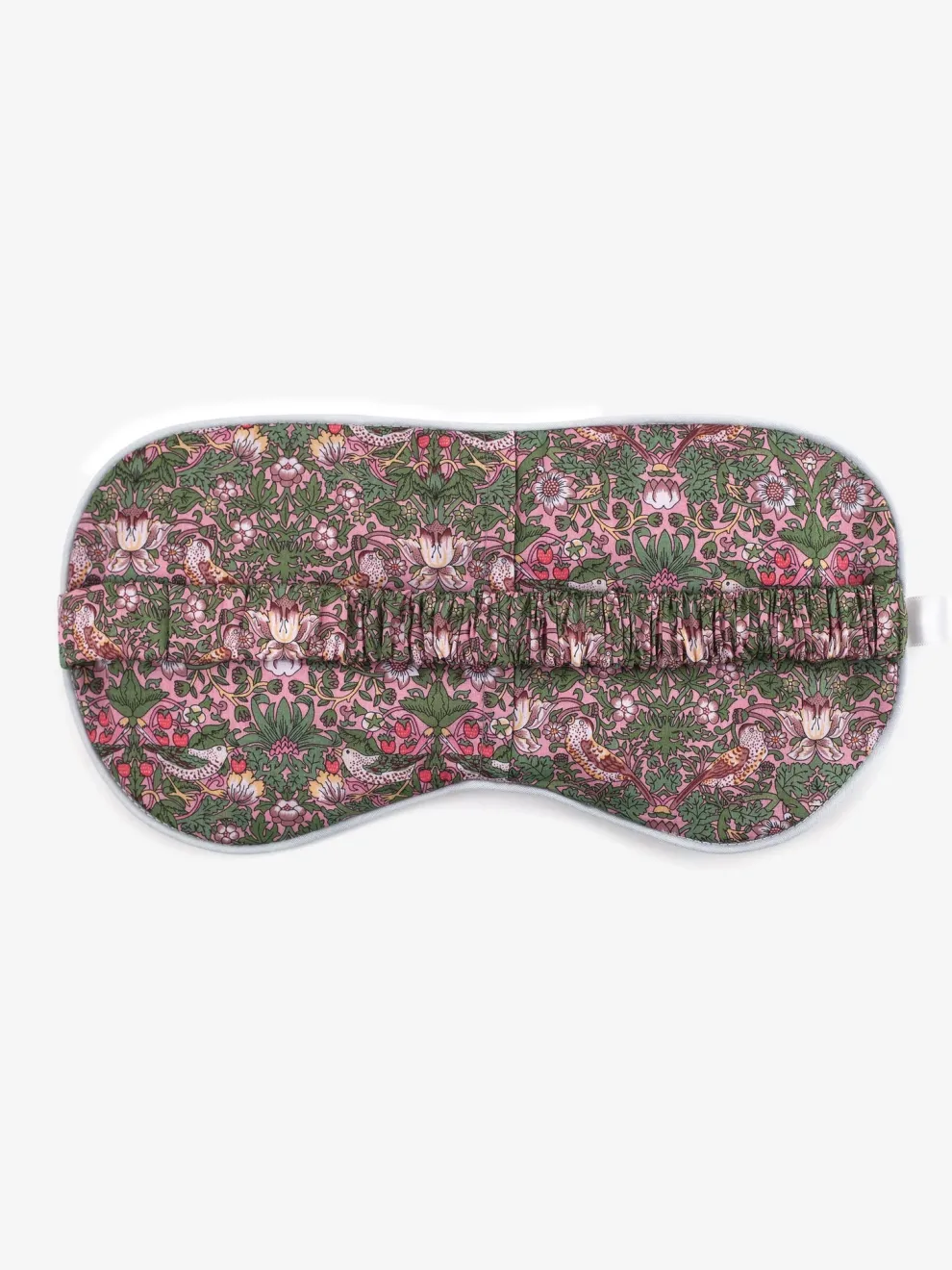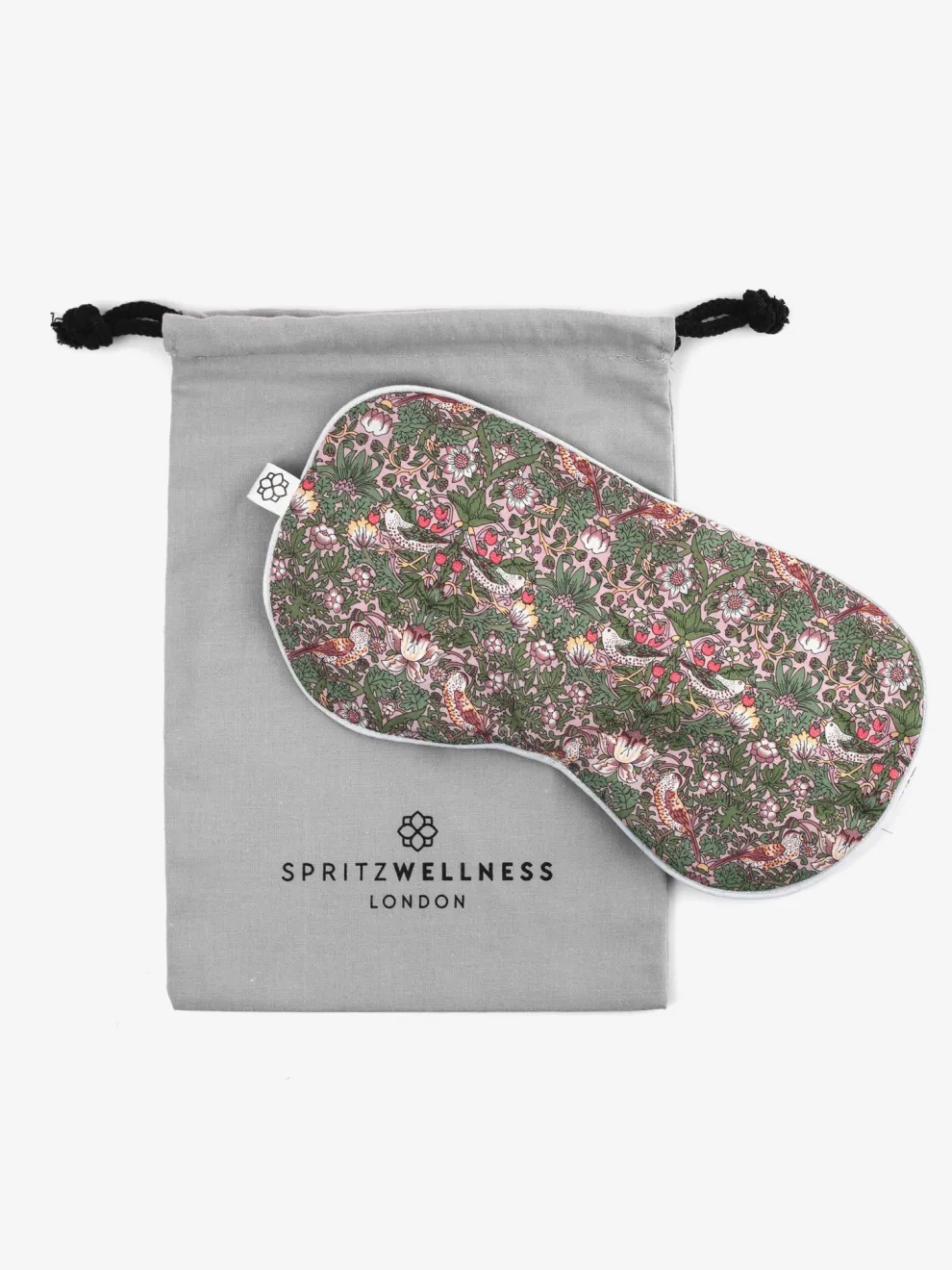 The removable outer cover is washable and made from beautiful and iconic Liberty London Tana Lawn cotton fabric. A grey drawstring bag is included for storage and travel. The eye mask can also be used as a cold compress – place it in the freezer in a sealed plastic bag to chill 30-60 minutes before use. It can also be warmed in the microwave for 15 seconds to help soothe tired eyes. Bliss!