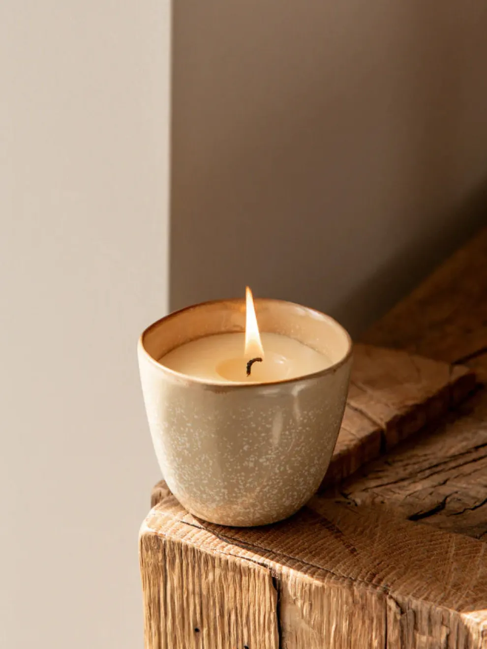 - Ceramic vessel. Vegetable and mineral wax blend, combination of essential oils and nature identical fragrances with lead-free cotton wicks.