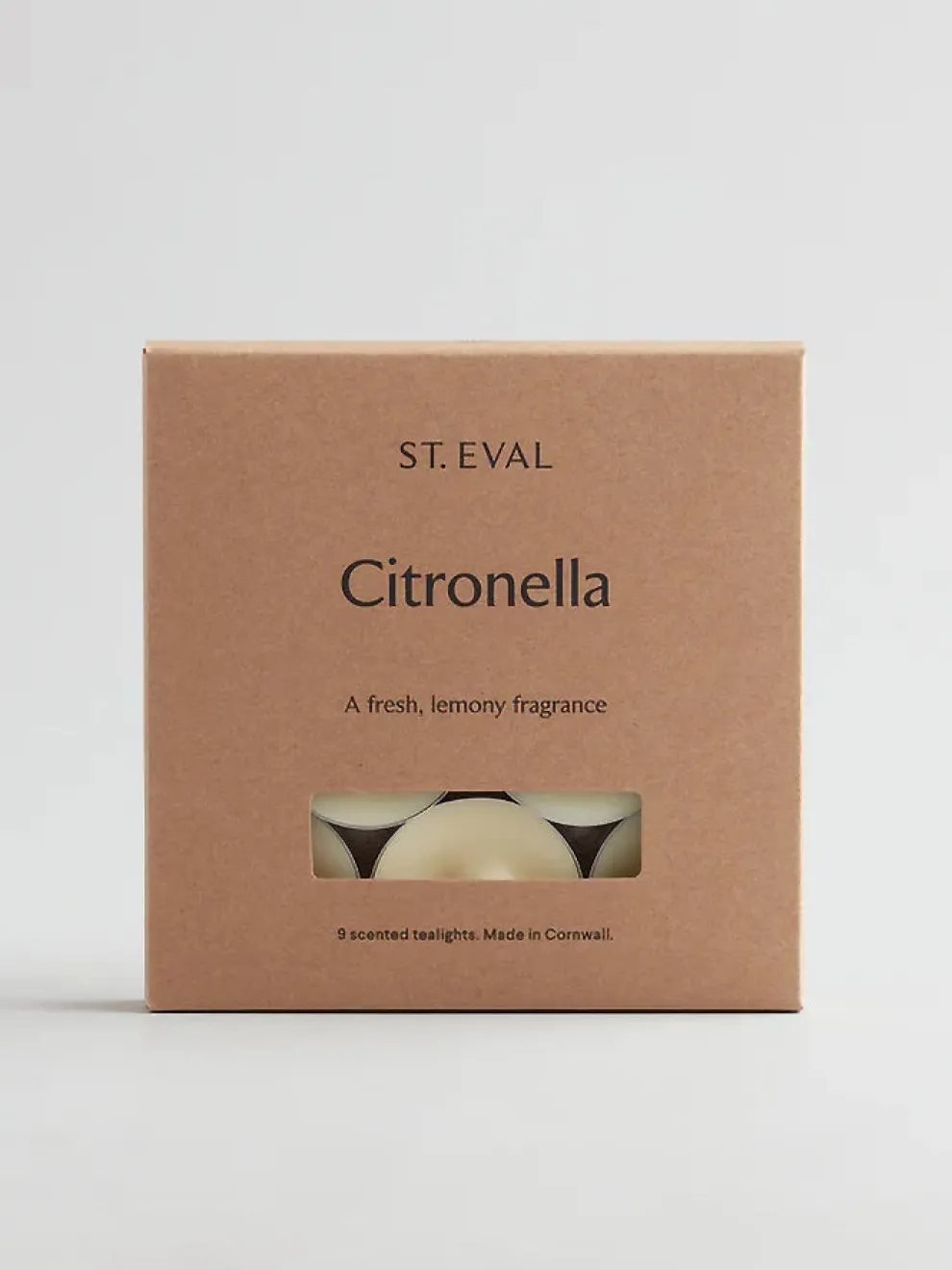 Each poured tealight is delicately filled with a fresh lemony citronella fragrance, great to keep insects away. The ultimate summer scent.