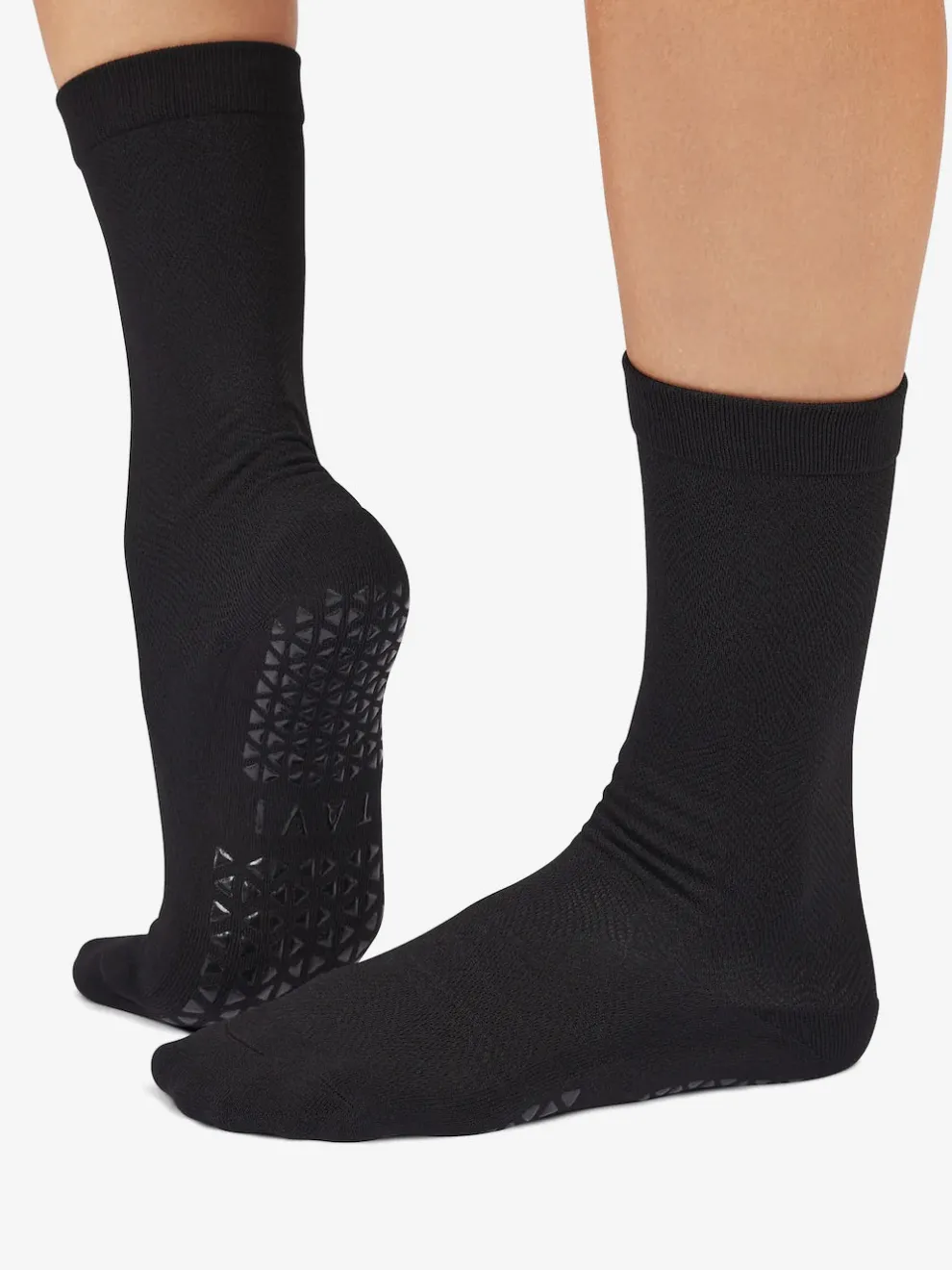 TAVI Kai Tec Crew Grip Sock is perfect for barefoot fitness activities like yoga, barre, Pilates and is also made to wear in shoes for high impact activities that require interior and exterior grip.