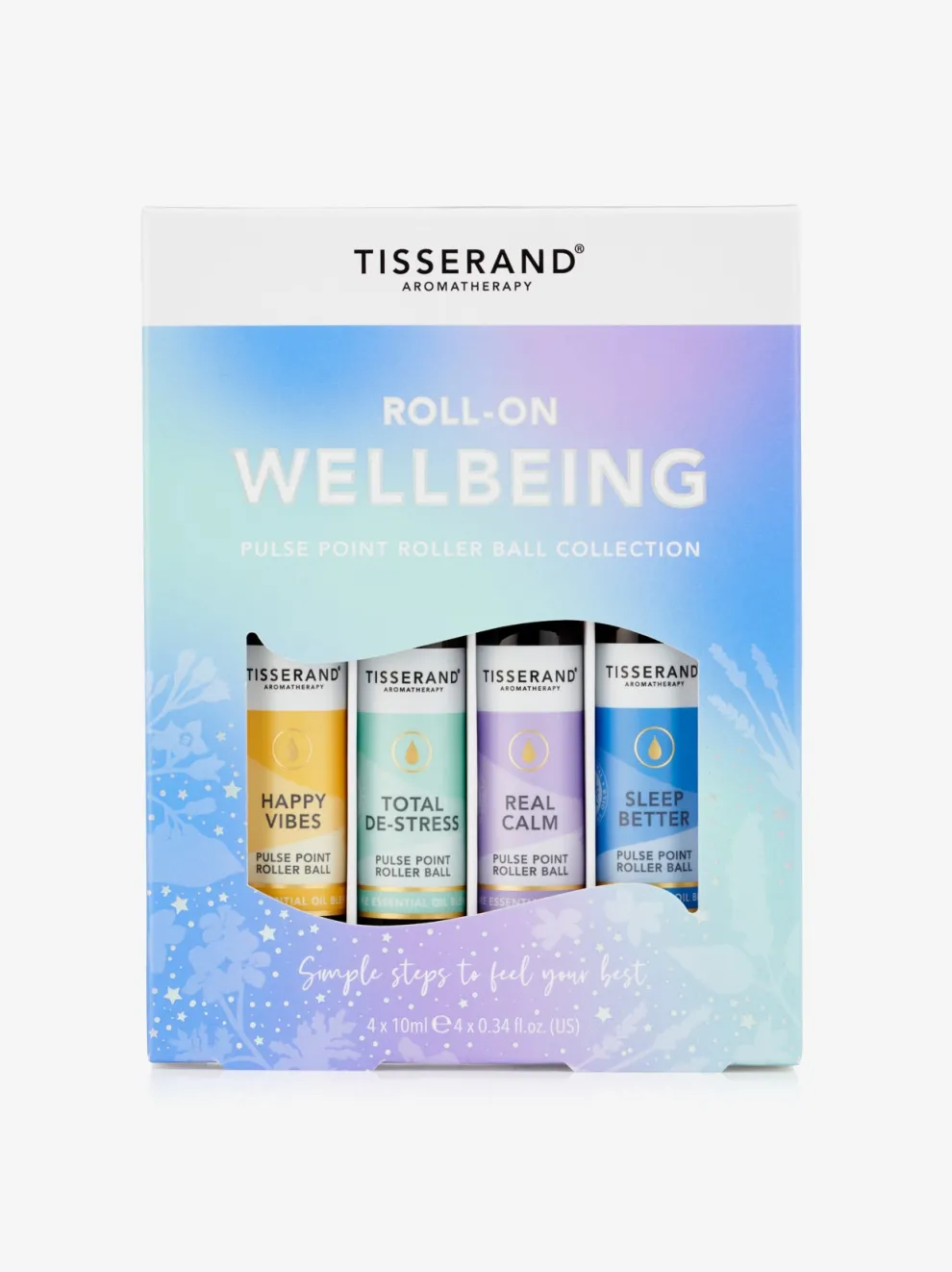 - Total De-stress Pulse Point Roller Ball 10ml: a comforting blend of Geranium, Orange and Nutmeg to help you to slow things down and breathe