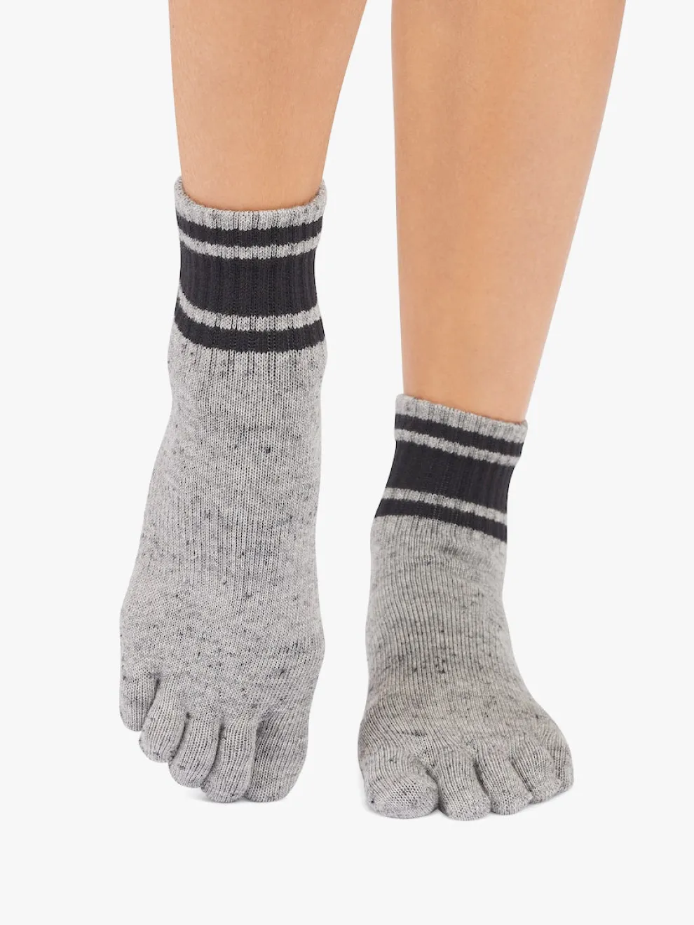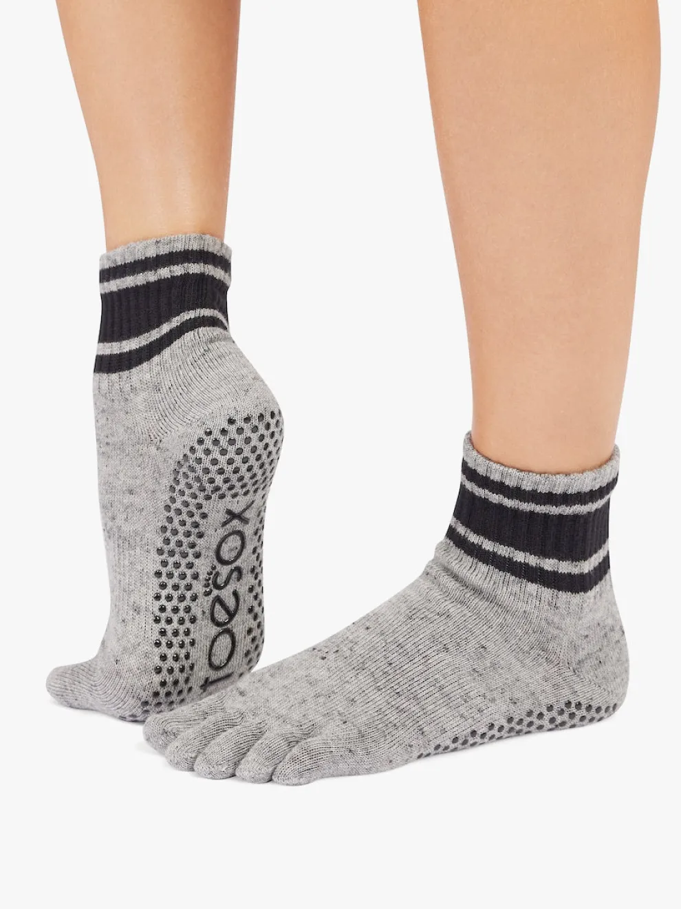 ToeSox Melody style rests just above the ankle and provides secure foot placement on the floor, mat or equipment. A hygienic alternative to bare feet., and the perfect grip toe sock for Yoga, Pilates and Barre.