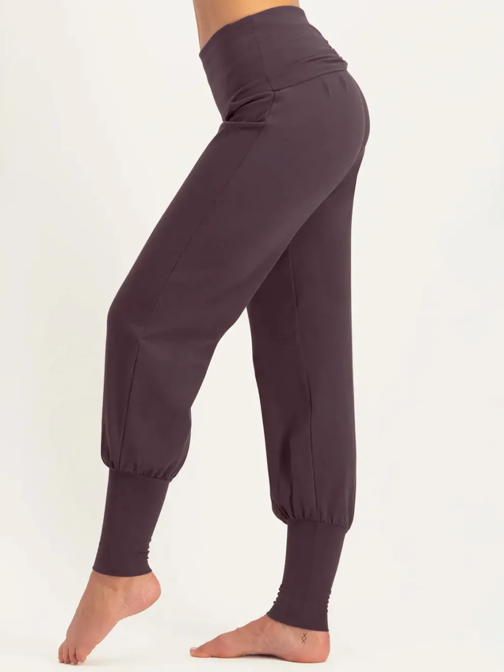 The Urban Goddess Devi loose yoga pants are made from soft organic cotton – perfect for slow-paced yoga classes or lounging at home. The double waistband adds warmth and comfort.