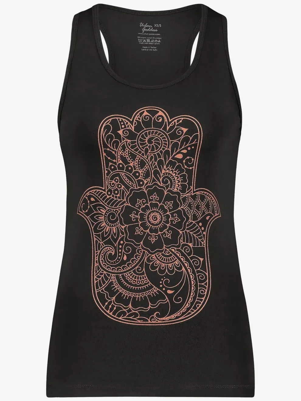 Urban Goddess use only certified organic cotton for their yoga wear. The Hamsa tank is GOTS (Global Organic Textile Standard) certified. Plus, Urban Goddess is completely CO₂-neutral and all yoga clothing is PETA-approved vegan. Urban Goddess is truly sustainable – good for you, good for the planet.