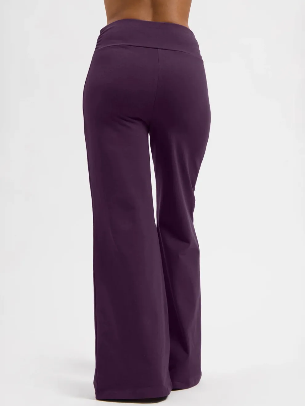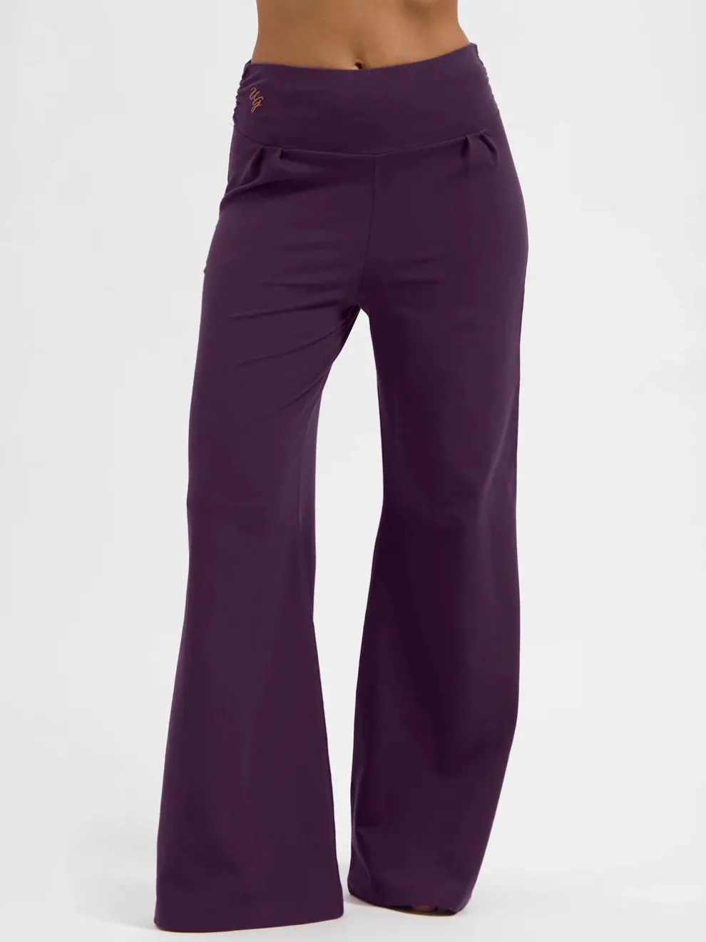 Embrace comfort and elegance with these wide-leg yoga pants. Featuring a loose fit, mid-waist design, and made in breathable organic cotton, they’re perfect for gentle yoga practices. The stylish pleated hip band and versatile look make them ideal for lounging, traveling, or meditation – your go-to choice for both yoga and relaxation.
