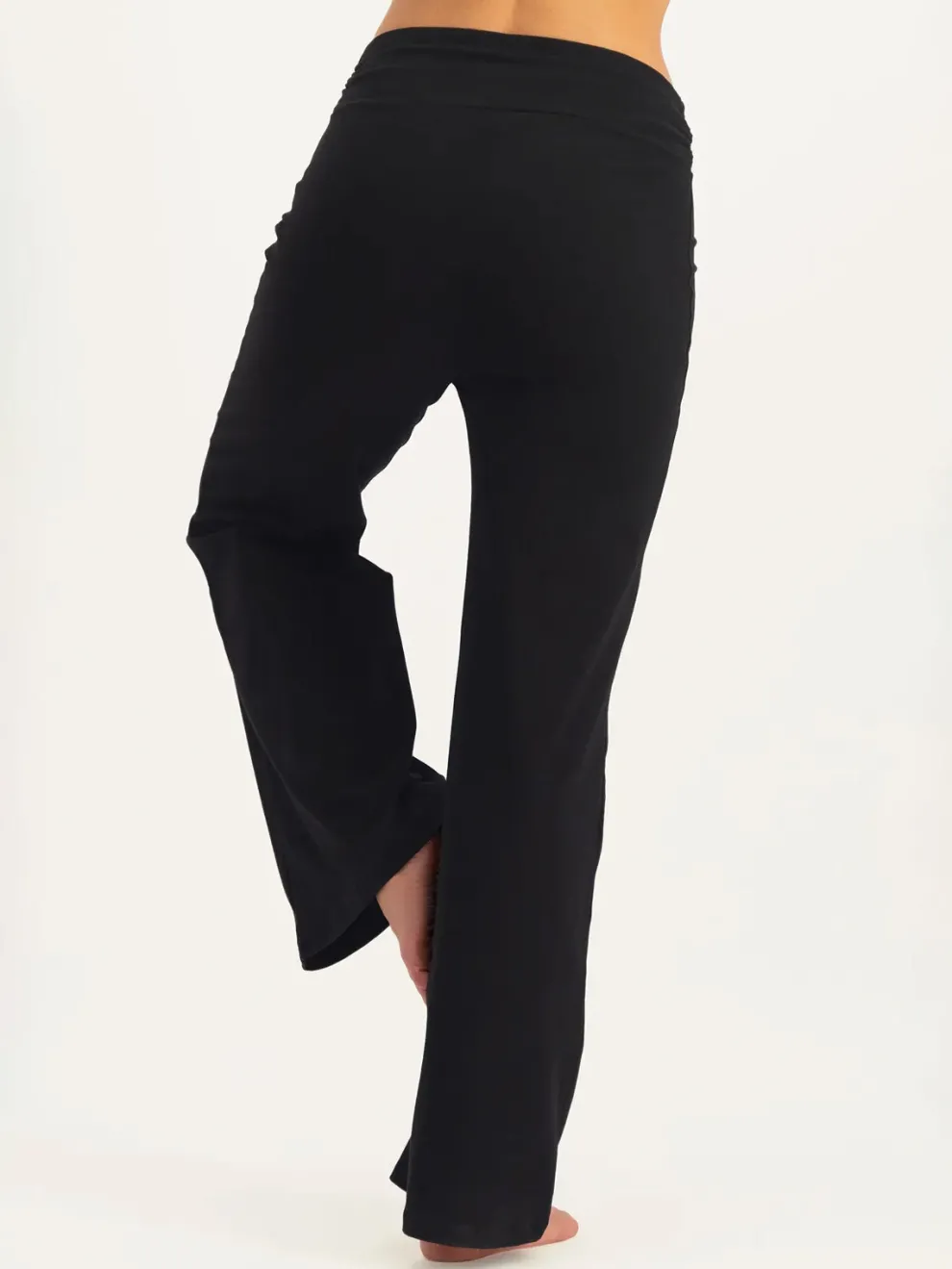 Embrace comfort and elegance with these wide-leg yoga pants. Featuring a loose fit, mid-waist design, and made in breathable organic cotton, they’re perfect for gentle yoga practices. The stylish pleated hip band and versatile look make them ideal for lounging, traveling, or meditation – your go-to choice for both yoga and relaxation.