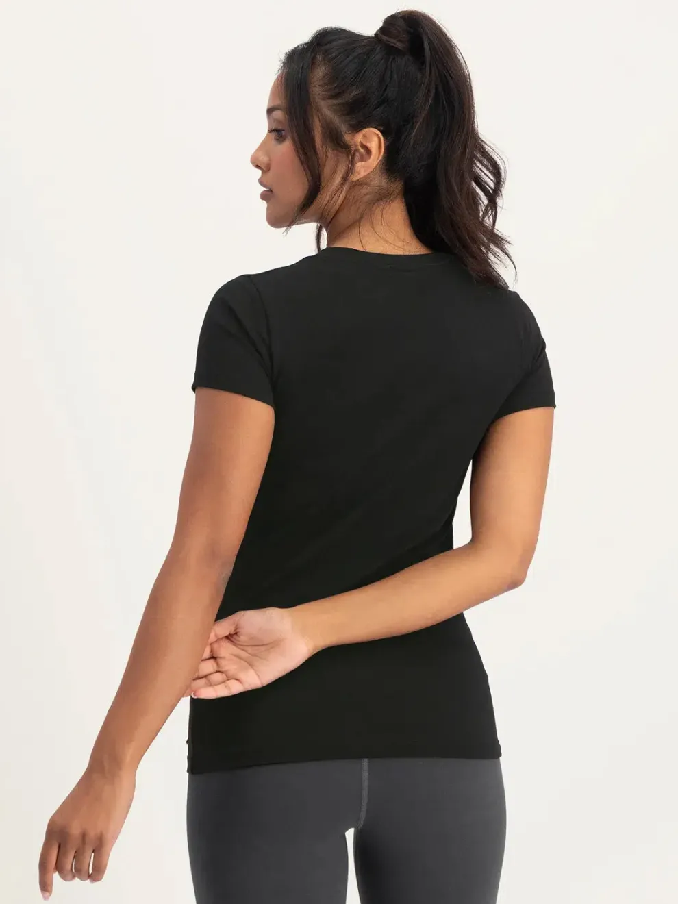 The OM Core Yoga T-Shirt in Onyx Black is a must-have for every yogi. Made from organic cotton, it features a round neck, short sleeves, and a comfortable fit that stays in place during even the most active yoga practices.