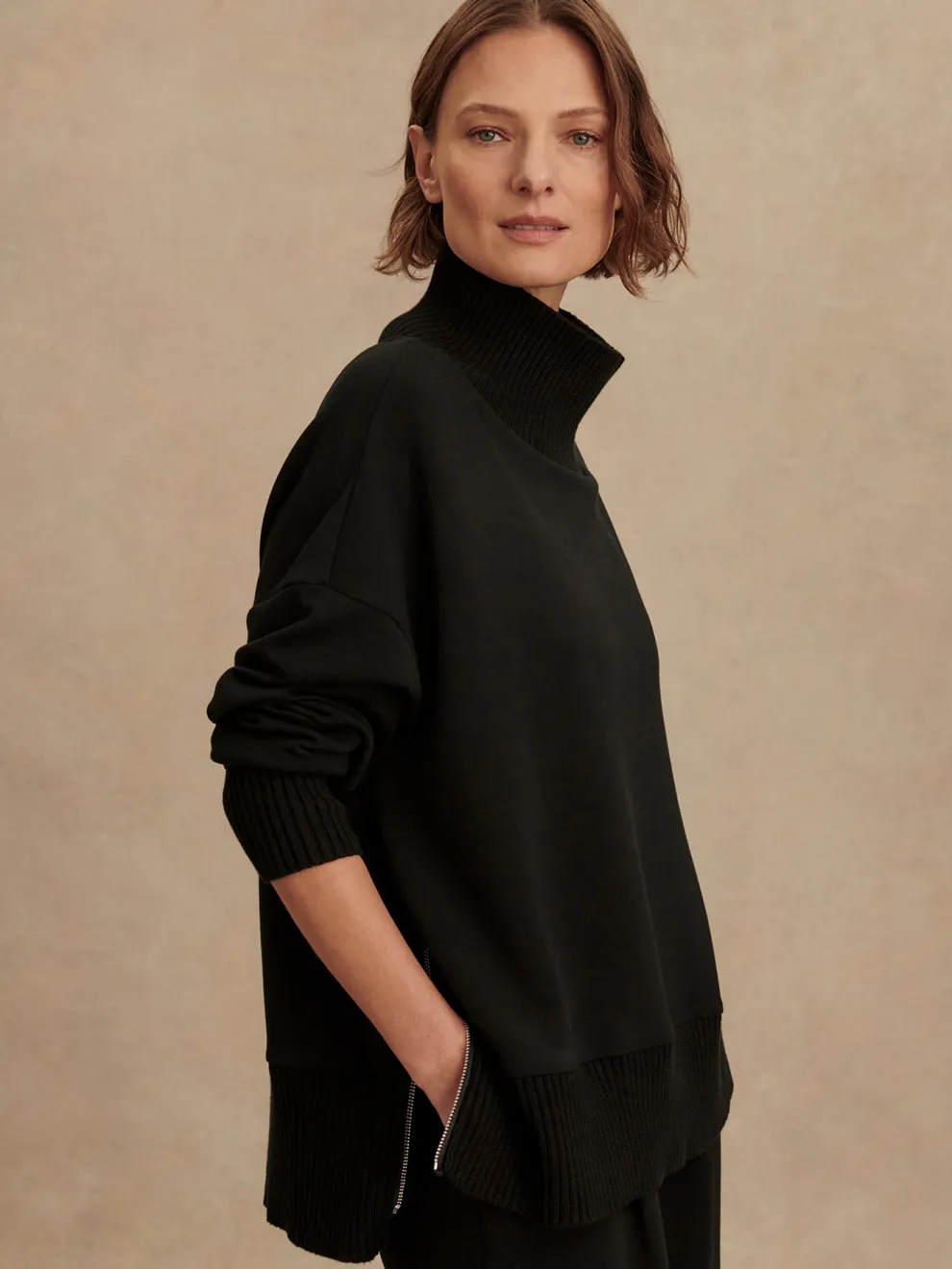 This essential sweatshirt boasts an oversized fit and modern high-neck design. Complete with knitted cuffs, neck, and hem, it includes deep side splits for enhanced movement and style.