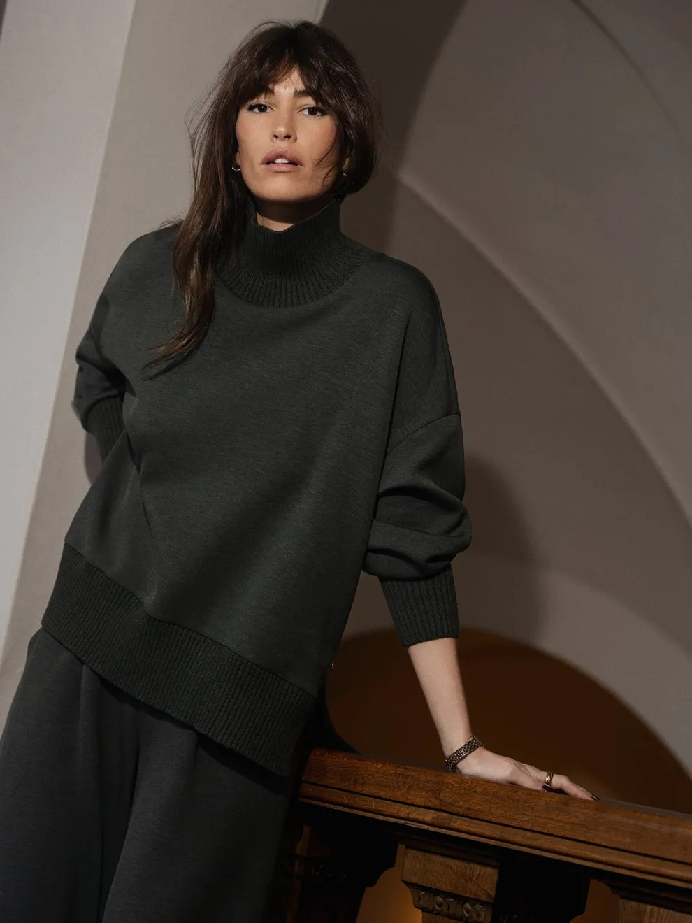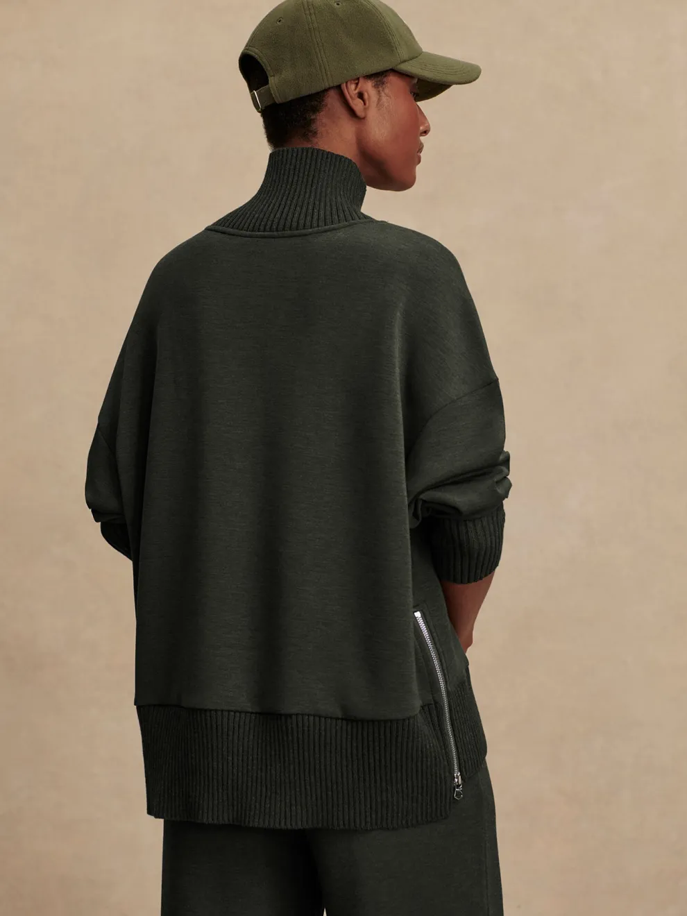 This essential sweatshirt boasts an oversized fit and modern high-neck design. Complete with knitted cuffs, neck, and hem, it includes deep side splits for enhanced movement and style.