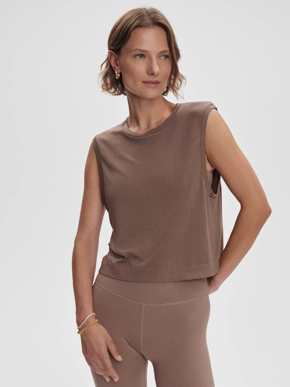 Cut to a versatile cropped silhouette, the Page tank top is produced in Varley’ssoft and supportive Seamless fabric for all-day comfort. With dropped armholes and subtle textured perforation, the breathable, lightweight design is ideal for every type of workout.