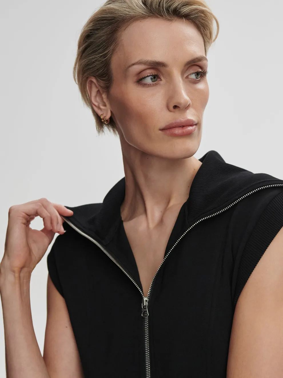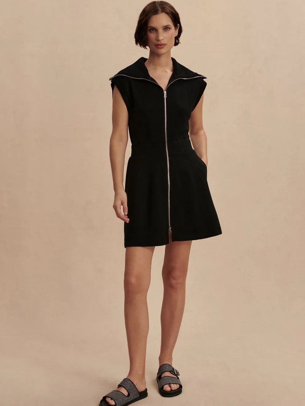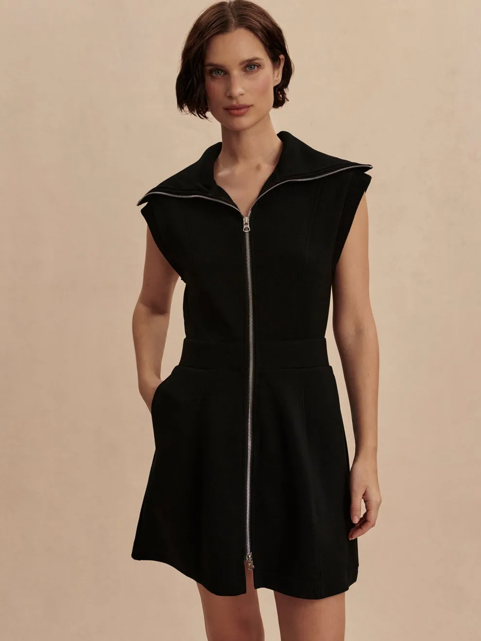 The Rebecca zip-through dress comes in a short length and is made in Varley’s classic DoubleSoft® fabric, with an exaggerated rib collar and rib panels around the armholes. A two-way zipper gives you various styling options. It also features an elasticated waistband, functional side-entry pockets, as well as flattering seaming details along the front and on the back.