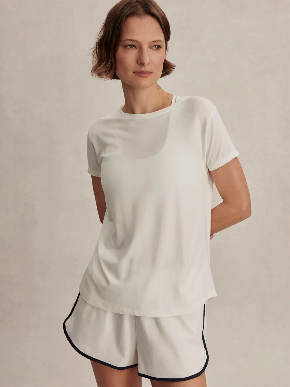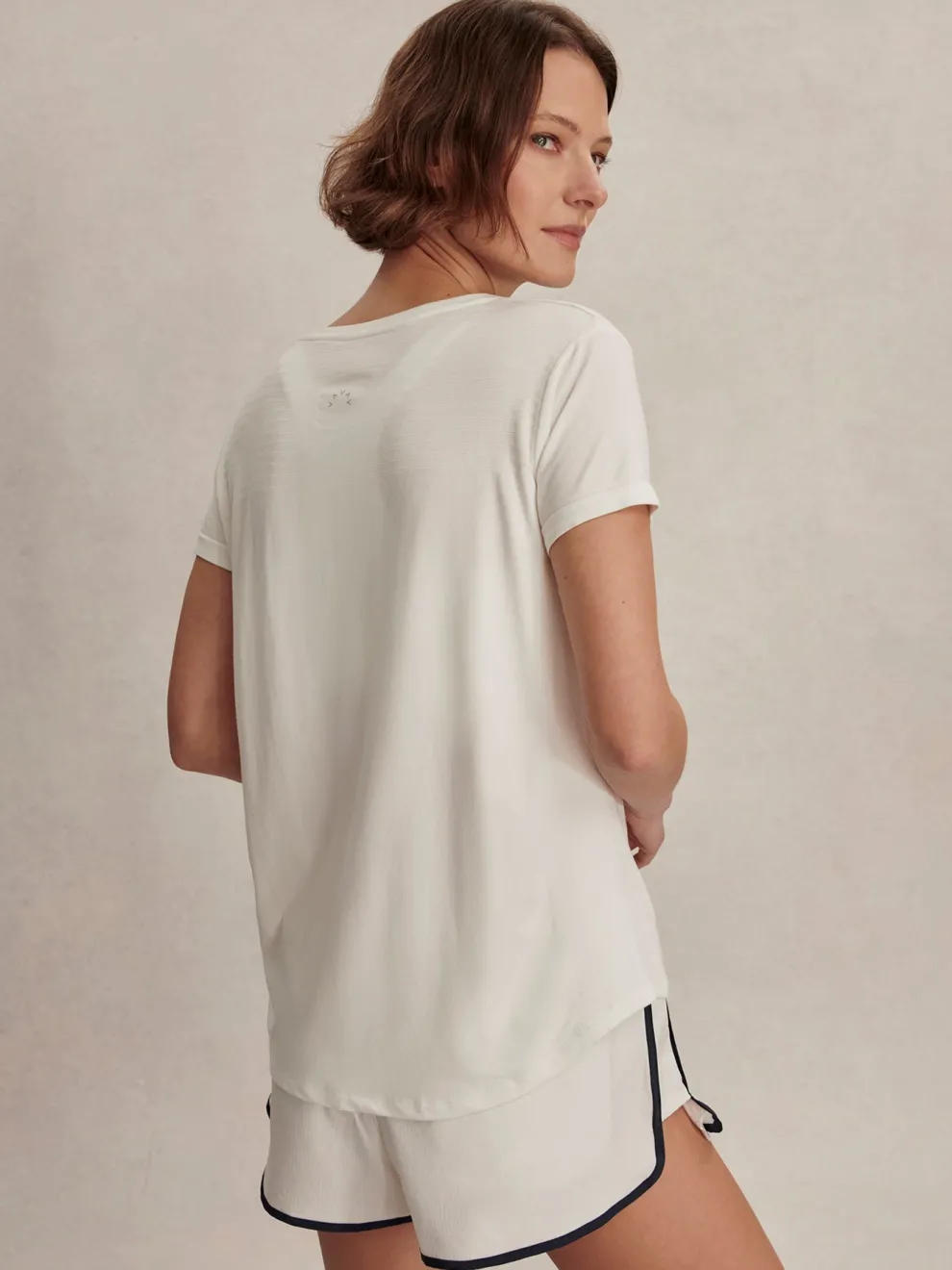 Cut to an easy, longline shape, the Saskia is a staple tee for active days. Crafted from Varley’s Modal Seamless fabric, it offers super soft and lightweight comfort with a natural feel, draping, and a hint of texture. Complete with a shaped, curved hem that accentuates the fit.
