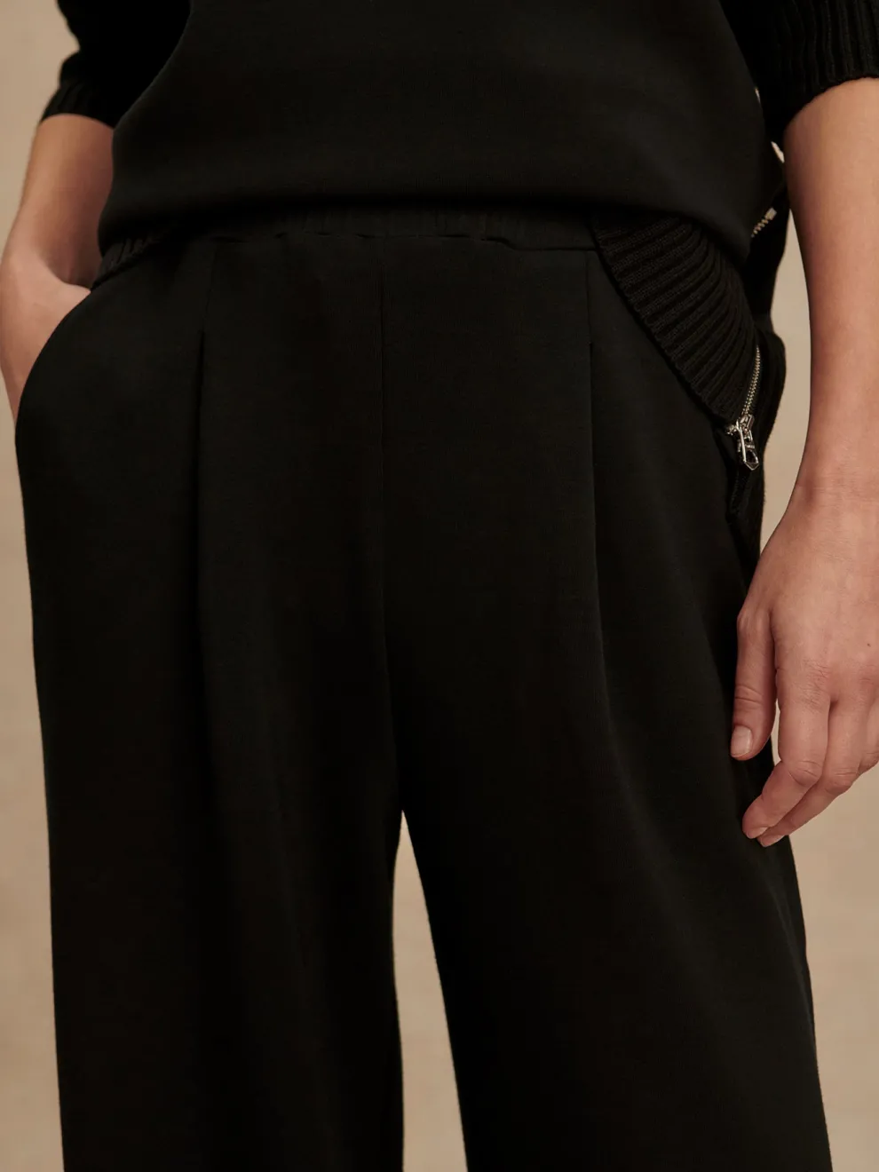 A versatile choice for everyday styling, this pant offers a chic extra wide-leg silhouette, accentuated with a high waist and pleat details at the front. Complete with a fully elasticated waistband and side entry pockets, it blends ultimate comfort with elegance.