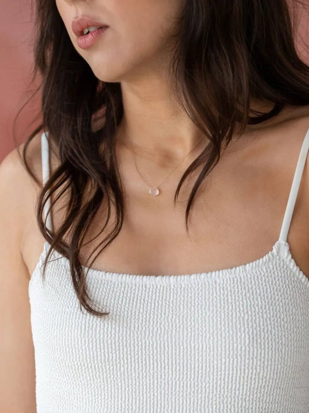 Each piece of Wanderlust Life jewellery is accompanied by a message that expands on the traditional properties of its gem. The optimistic pink tone of the rose quartz underlines its role as a positive, healing stone for the heart.