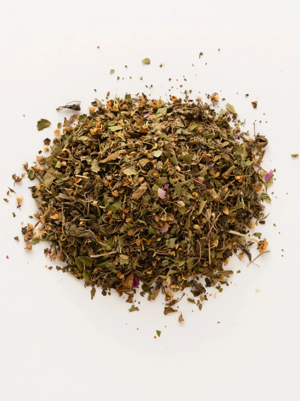 Rose & cardamom addan uplifting essence to this blendand together they create an aphrodisiac element- a heart opener. This herbal blend invites in the love!