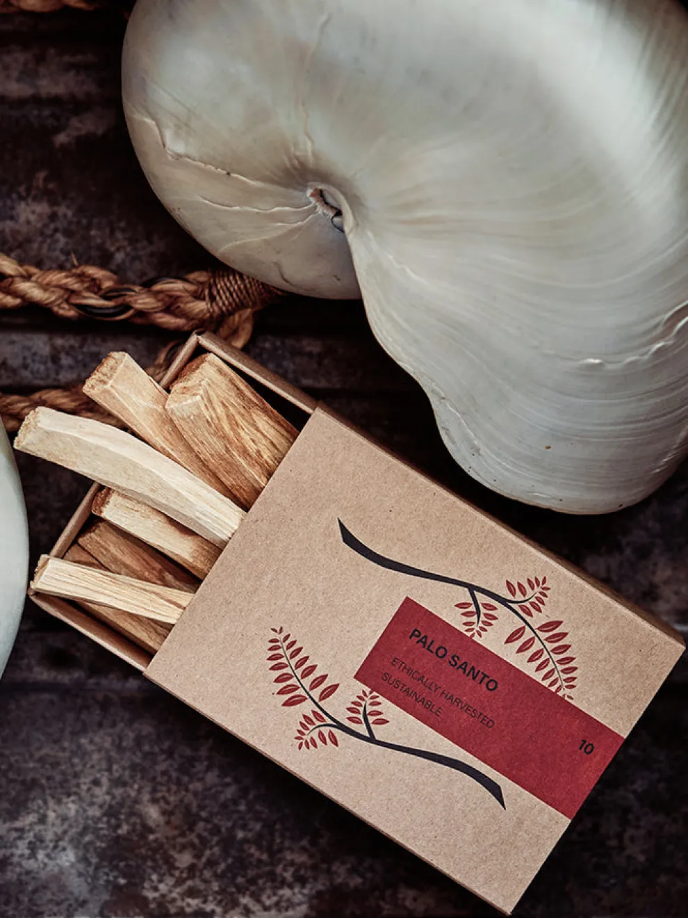 Palo Santo (Bursera Graveolens), is a tree that inhabits the coast of South America. According to the local customs, the wood is used to remove negative energy – when the stick is burnt the smoke produces a scent that is extremely calming and soothing.