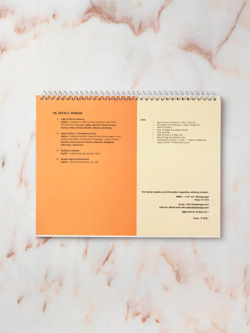This practical ring bound book from Dr. Geeta S. Iyengar contains a collection of asanas and pranayamais based on the Intermediate Course taught atthe Ramamani Iyengar Memorial Yoga Institute in Pune, India. .