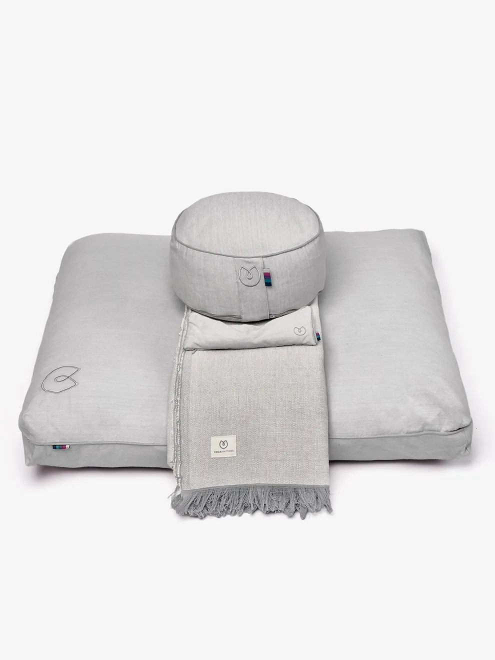 Create a calming space at home with our indulgent set of meditation props made from 100% organic cotton making moments of meditation and reflection that much easier.