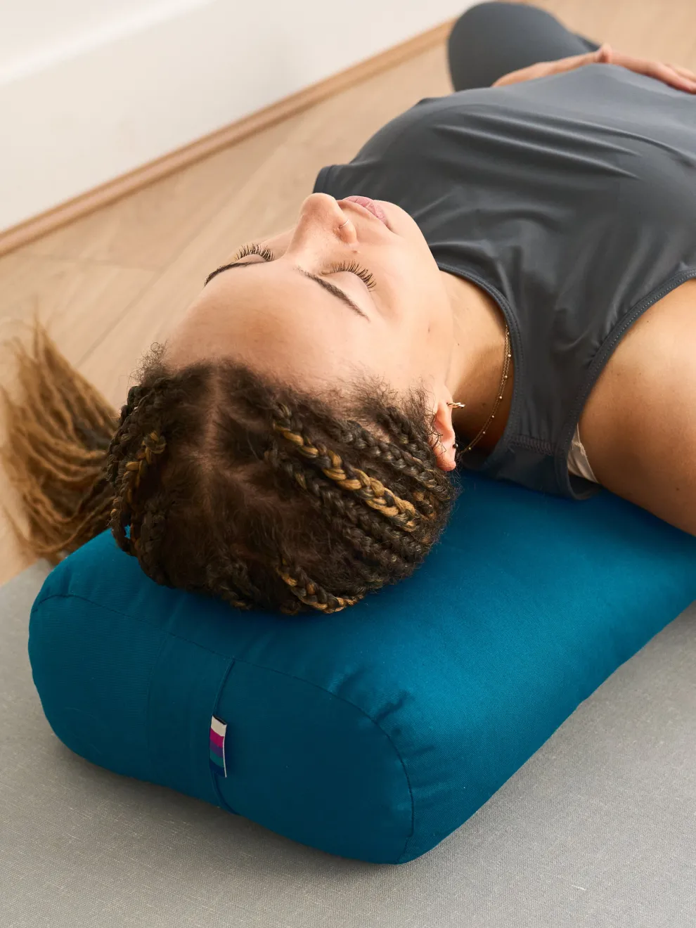 Support your practice with our rectangular variation of the classic cylindrical bolster offers greater width and a flatter surface for supine postures. The flat surface supports the back and can also be used to raise the hips in sitting postures and placed lengthways under the mid back to open up the chest.