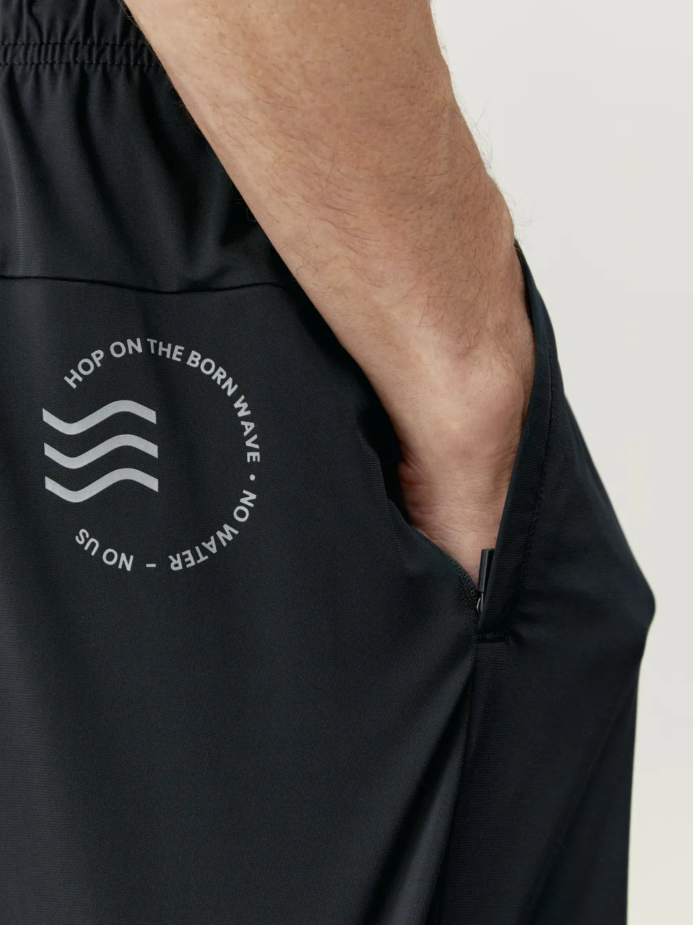 Born sports shorts made from stretch “Air_tech” fabric which is lightweight and comfortable. Features heat sealing on the hems, two zippered pockets, adjustable drawstring and an inner hanging strap, as well as a reflective side logo.