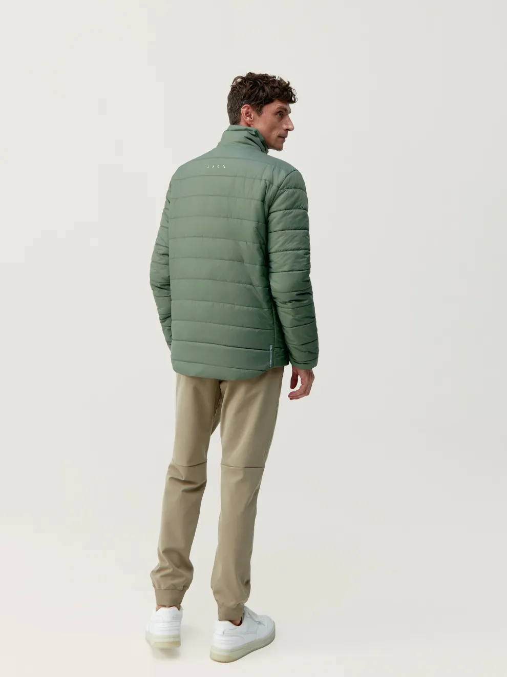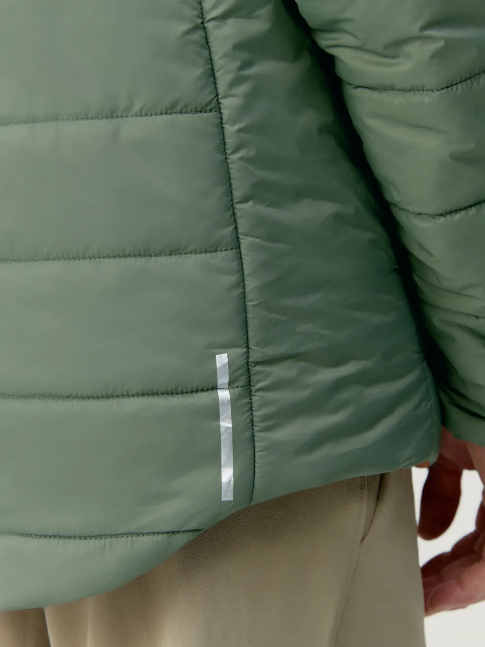 This Born feather light windstopper is made up of quilted panels and water repellent outer fabric. It has two side pockets with zipper closures and two inside pockets. Adjustable waist with elastic and reflective logo on the back.