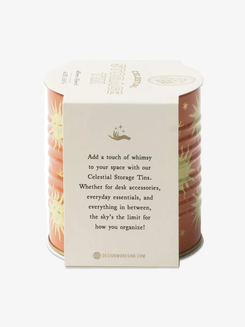 This printed tinplate storage tin is perfectly sized for keeping pens, pencils, scissors and other stationery supplies neatly organised whilst adding colour and pattern to your workspace.