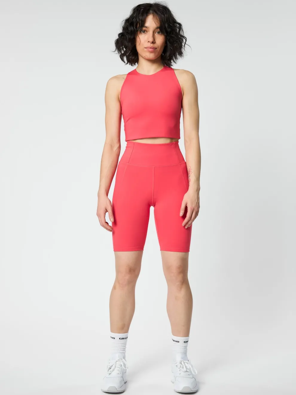 These Girlfriend Collective high-rise bike shorts are made from recycled water bottles – for working out and helping the environment.