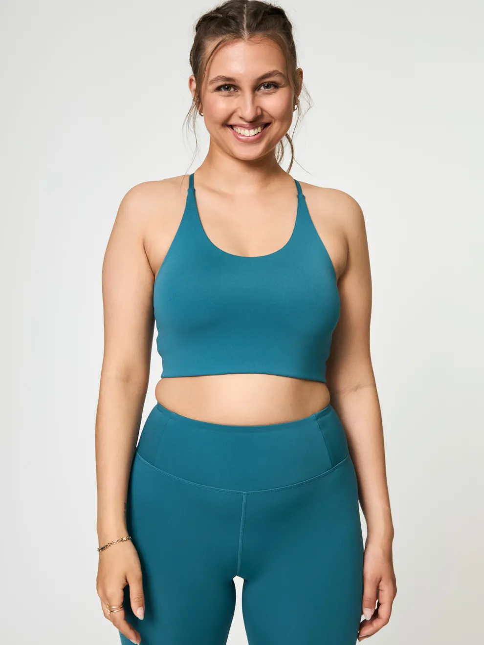The Cleo Bra is a little bit sporty, a little bit feminine. It has thin straps, a nice open neckline and a longer body to provide a bit more coverage whilst still keeping things nice and cool even during sweatier activities. We’re looking at you, hot yoga.