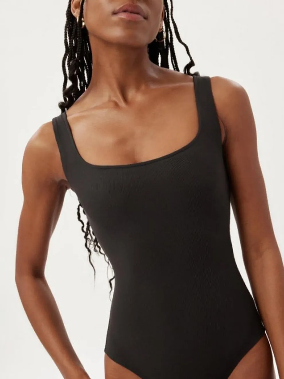 Slip into the Penny Square Neck Bodysuit with its ultra-lightweight, stretchy ribbed fabric and built-in bra support. Fixed straps and an open square neckline make it effortlessly stylish. Make with a thoughtful no-closure design for ease and comfort.