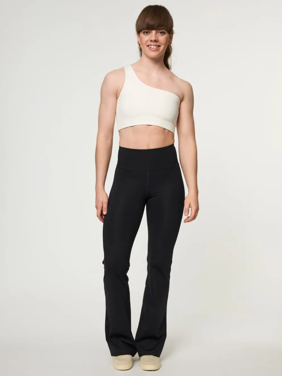 The Compressive Flare Legging delivers the perfect balance between form and flow, fitted at the waist and flaring from the knee down.